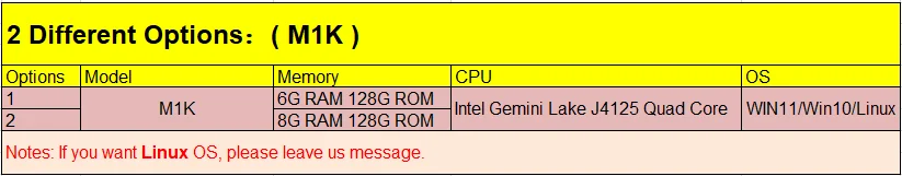 M1K Мини ПК Intel Gemini Lake J4125 Win11/Win10/Linux 6G/8G RAM 128G ROM
