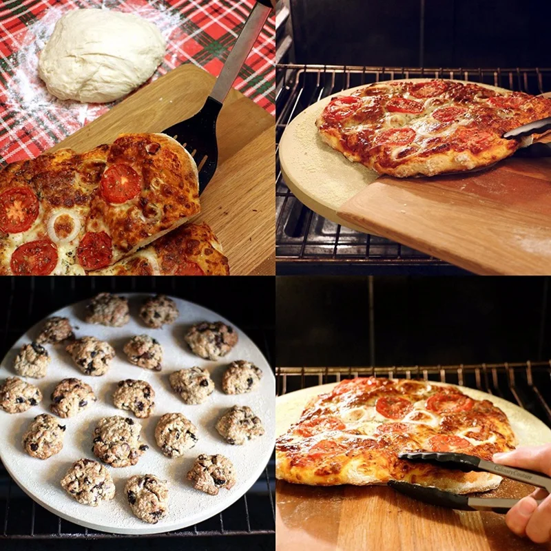 Имитирует профессиональные кирпичные печи, равномерно распределяет тепло для оптимального приготовления пищи, поглощает влагу из теста, этот камень даст вам хрустящий, коричневая корка, которую вы жаждете и достигаете коммерческого эффекта кирпичной печи. Не только для пиццы, но и для хлеба, печенья, печенья и многого другого. Вы также можете нагревать или перегревать готовые пиццы для получения более точных результатов.