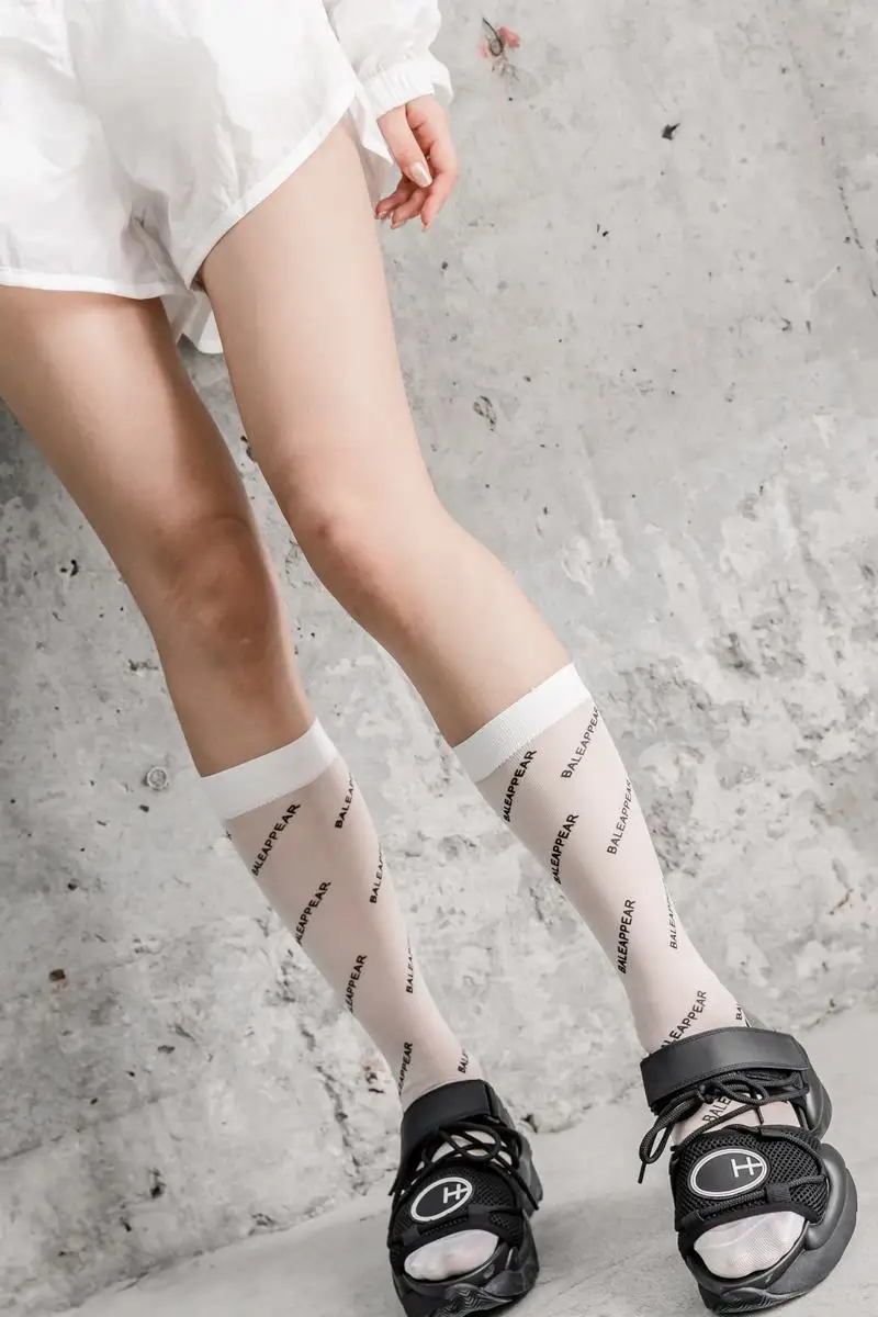 Женские белые, черные прозрачные нейлоновые чулки с надписями, с узорными татуировками, до колена, модные дизайнерские носки в уличном стиле для женщин и девочек Материал: нейлон + акрил Свободный размер.
