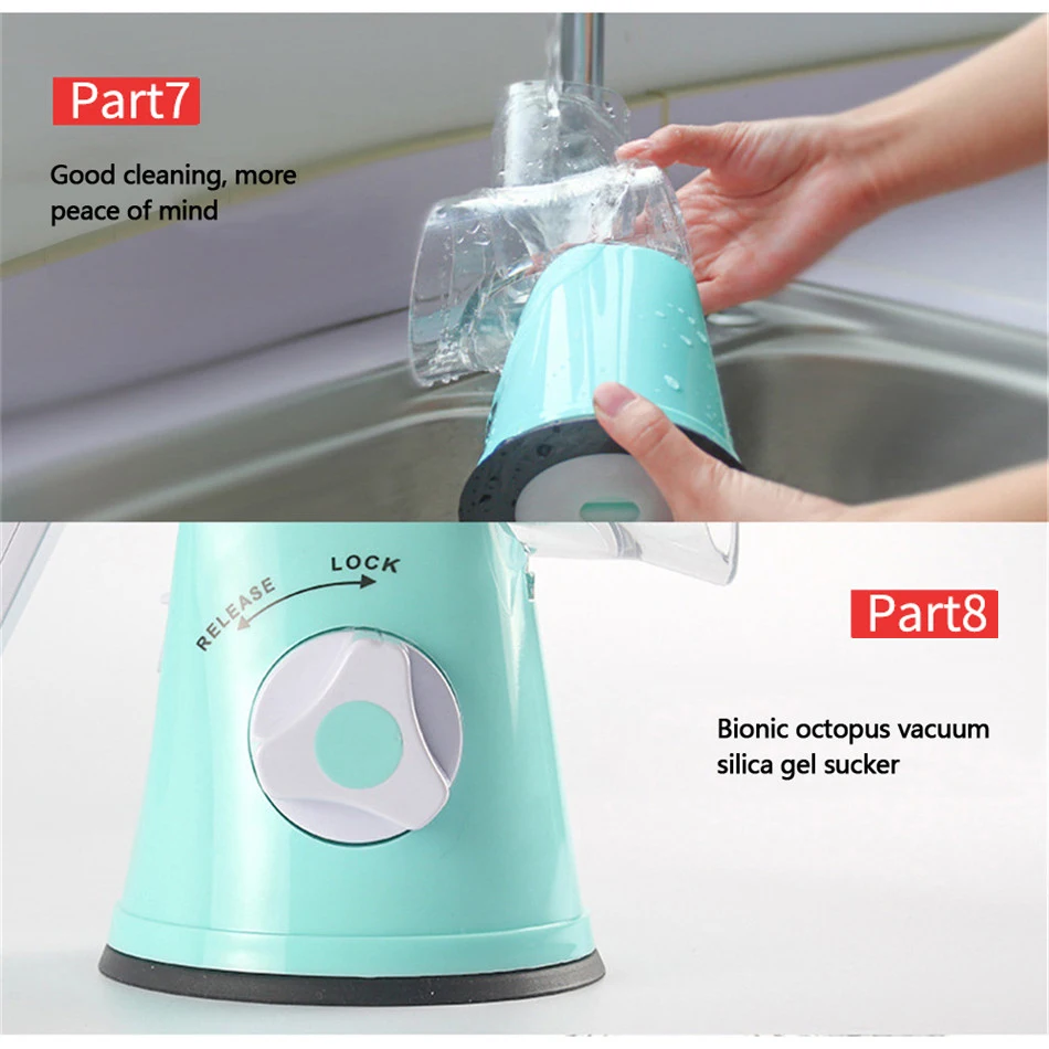 Оснащен 3 лезвиями из высококачественной нержавеющей стали, крепким и острым лезвием. Модный дизайн, мастерство. Маленький размер, полностью сохраняет пространство. Легко взаимозаменяемые барабаны для различных вариантов приготовления. Простая рукоятка поворачивает барабан и создает идеально тертые ингредиенты. Для работы и легкой очистки. Отлично подходит для hash browns, кукурузного говяжьего хеша и решетки coleslaw. Эта Поворотная Терка с ручным питанием идеально подходит для нарезки сыра, овощей, картофеля, сладкого картофеля, орехов, лука и многого другого. Отлично подходит для hash browns И решетки для coleslaw. Присоска обеспечивает твердое сцепление и стабильность на плоской поверхности. Барабаны оснащены вращающимися лезвиями из нержавеющей стали. BPA freПримечание: