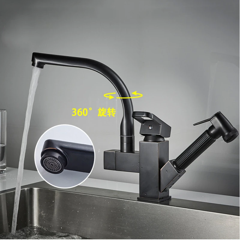 Особенности Функция: кухонный кран Особенность: централизованно Стиль: Современный Отделка: черный/хром Отверстия для установки: одно отверстие Центр смесителя: одно отверстие Тип клапана: Керамический клапан Материал корпуса смесителя: латунь Материал ручки смесителя: цинковый сплав Горячая и холодная вода Смеситель для кухонной мойки, смеситель для выдвижной мойки, кухонные краны с горячей и холодной водой, черный/Хромированный распылитель для душа
