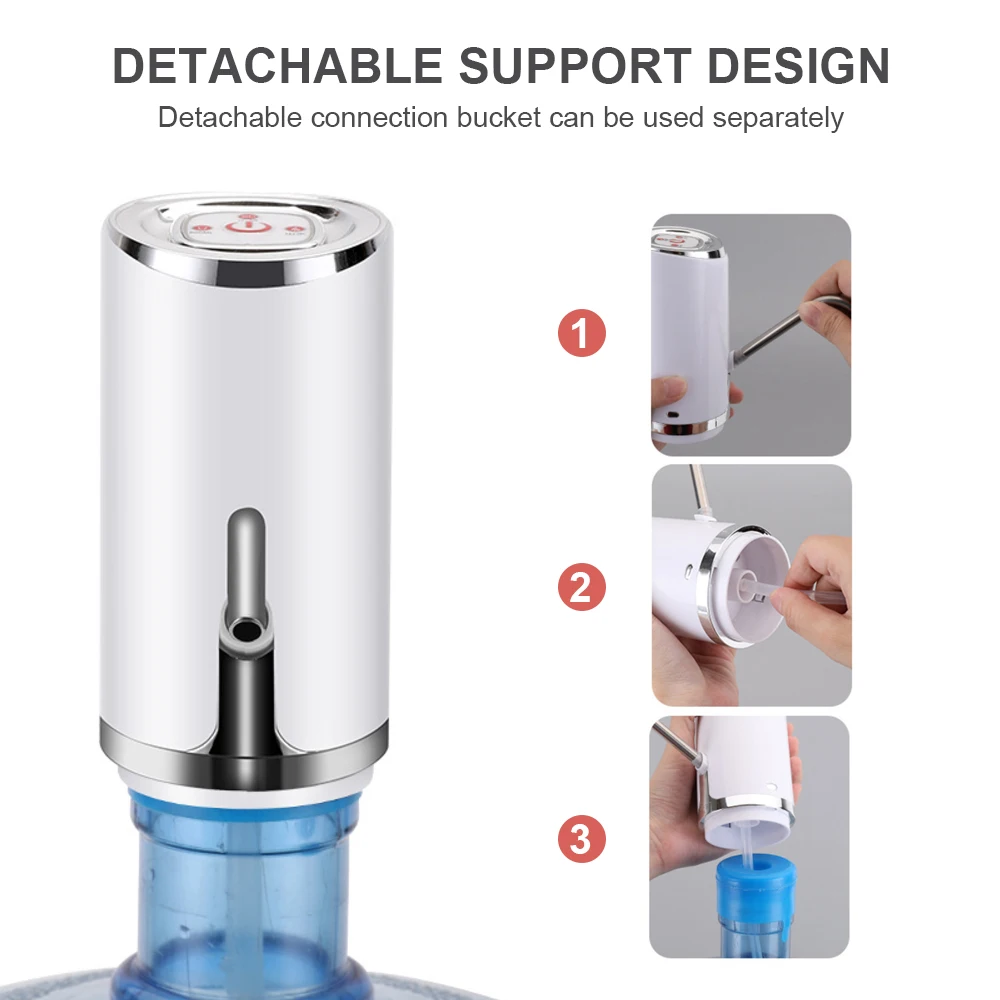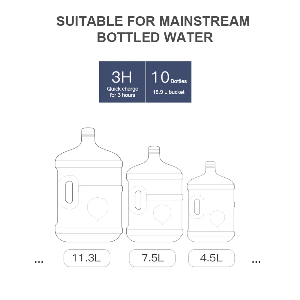 Модернизированный Тип: Интеллектуальный 2 режима количественного оттока воды, 0.3L или 1.0L, одна кнопка быстрого выхода воды без ожидания Низкий децибел, бесшумный дизайн Водопроводная труба, вращающаяся на 360 градусов Изготовлен из безопасного материала, без запаха, с высоким блеском, стойкостью к царапинам и износостойкостью Пищевая силиконовая водопроводная труба (может быть заменена в течение длительного времени, более Гигиеничная) 304 Выходная Труба из нержавеющей стали, со стильным и компактным корпусом, высокое качество. Беспроводной Электрический насос, подходит для улицы, легко носить с собой. USB кабель для зарядки Полная зарядка, интеллектуальная сенсорная кнопка, удобная и удобная. Примечание: только Модернизированный тип имеет функцию количественного оттока воды
