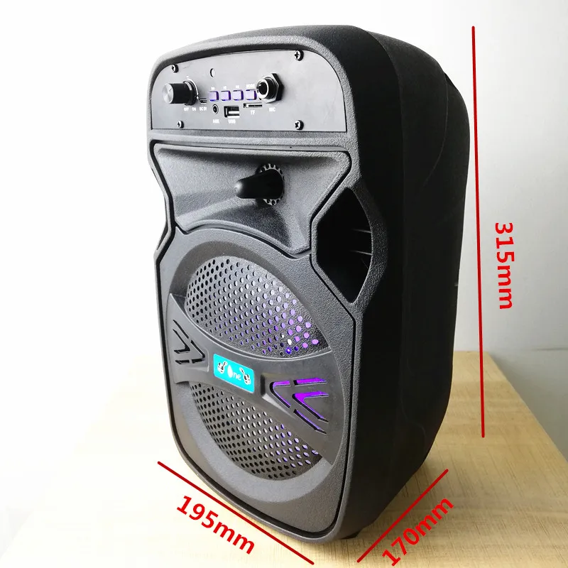 6,5 дюймов портативные активные колонки сабвуферы Функция: 1. Светодиодный дисплей. 2. С USB/TF/FM/AUX радио. 3. Герметичный динамик woody bos. Стильная панель. 4. С регулировкой основного объема. 5. Высокая литиевая батарея capcity. 6. Динамик: 6,5 дюймов * 1 7. Источник питания: литиевый аккумулятор. Технические характеристики: Входной DC-5V. Встроенный аккумулятор 18650. FM 87 МГц-108 МГц. Способ подключения: подключение по Bluetooth Тип интерфейса: USB Емкость аккумулятора: 1200ма Частотный диапазон отклика: 60 Гц-15 кГц Максимальная мощность: 100 Вт Усилитель: Встроенный с fm-радио Средние частоты: 6,5 Дюймов Посылка включает в себя: 1 шт * 6,5 дюймов активный сабвуфер 1 шт. * USB кабель 1 шт. * пульт дистанционного управления Примечание: у нас есть 5 стилей, отправленных случайным образом, те же функции!