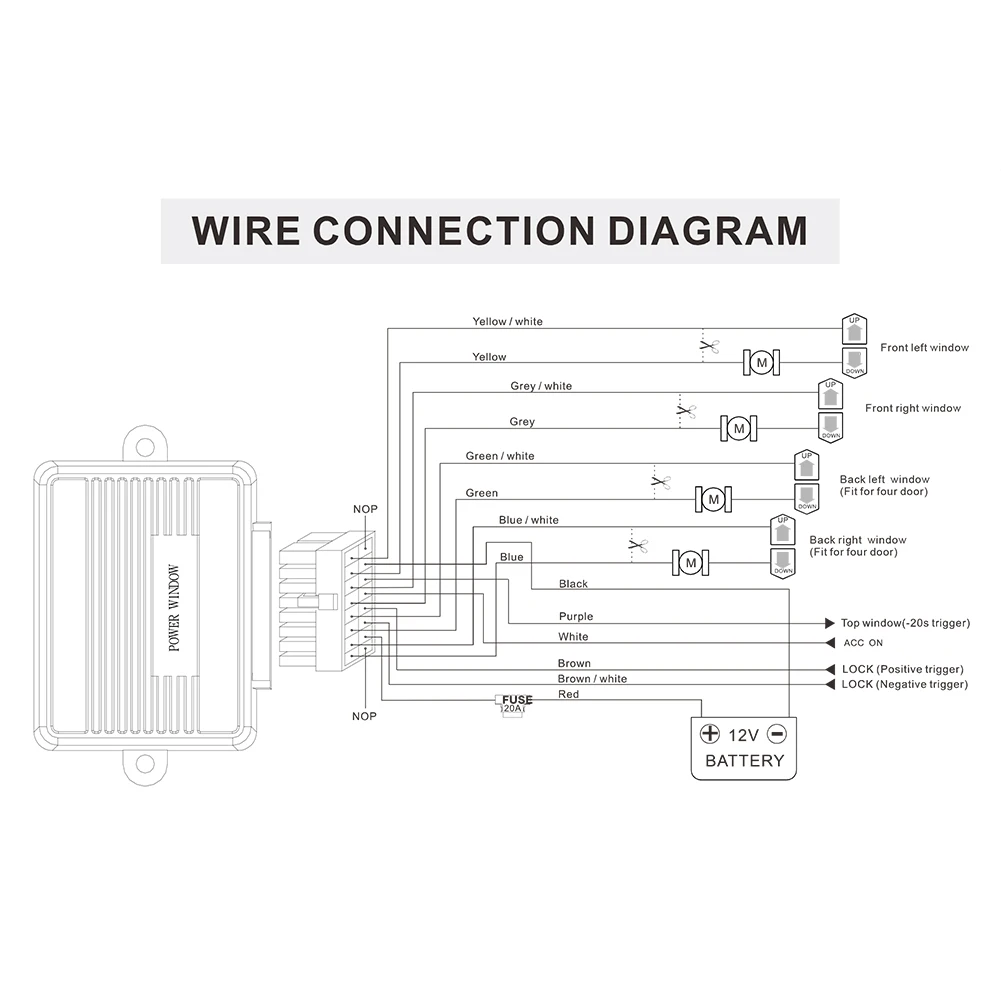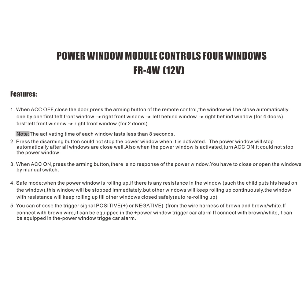 * 7. Совместим с автомобильной сигнализацией и безключевым входом, может удаленно закрывать окна, когда вы выходите из автомобиля.