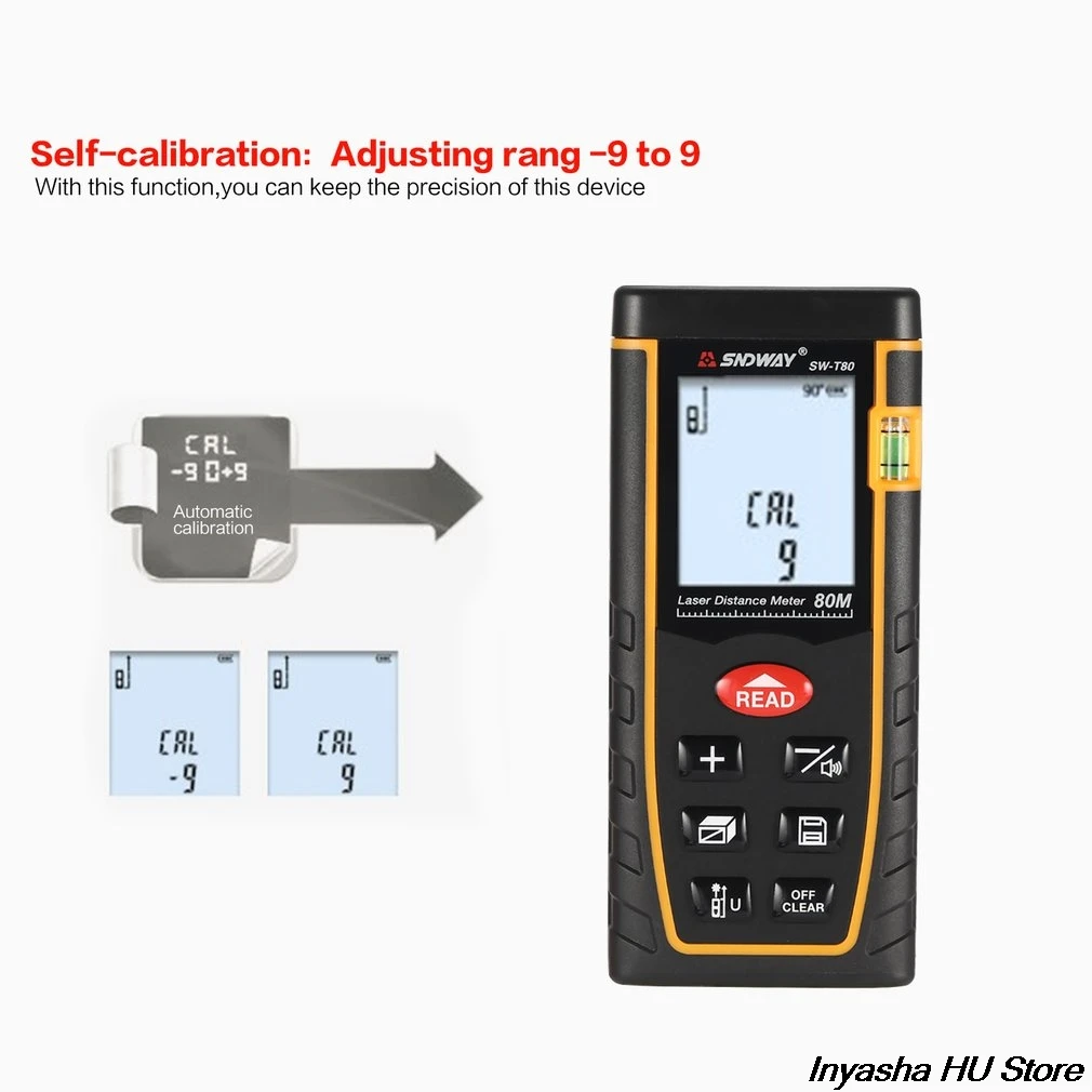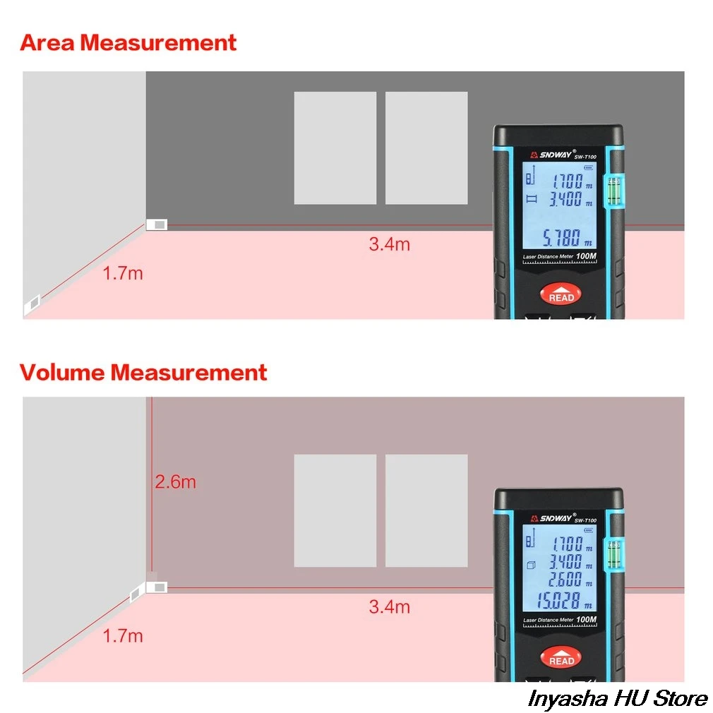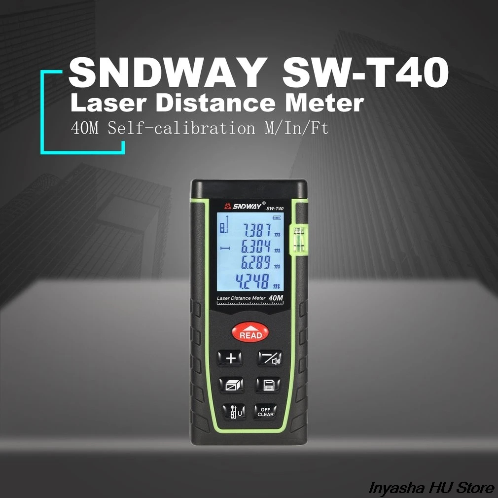 Этот лазер SNDWAY distance meter разработан специально для измерения и расчета расстояния, площади, объема и Пифагора.