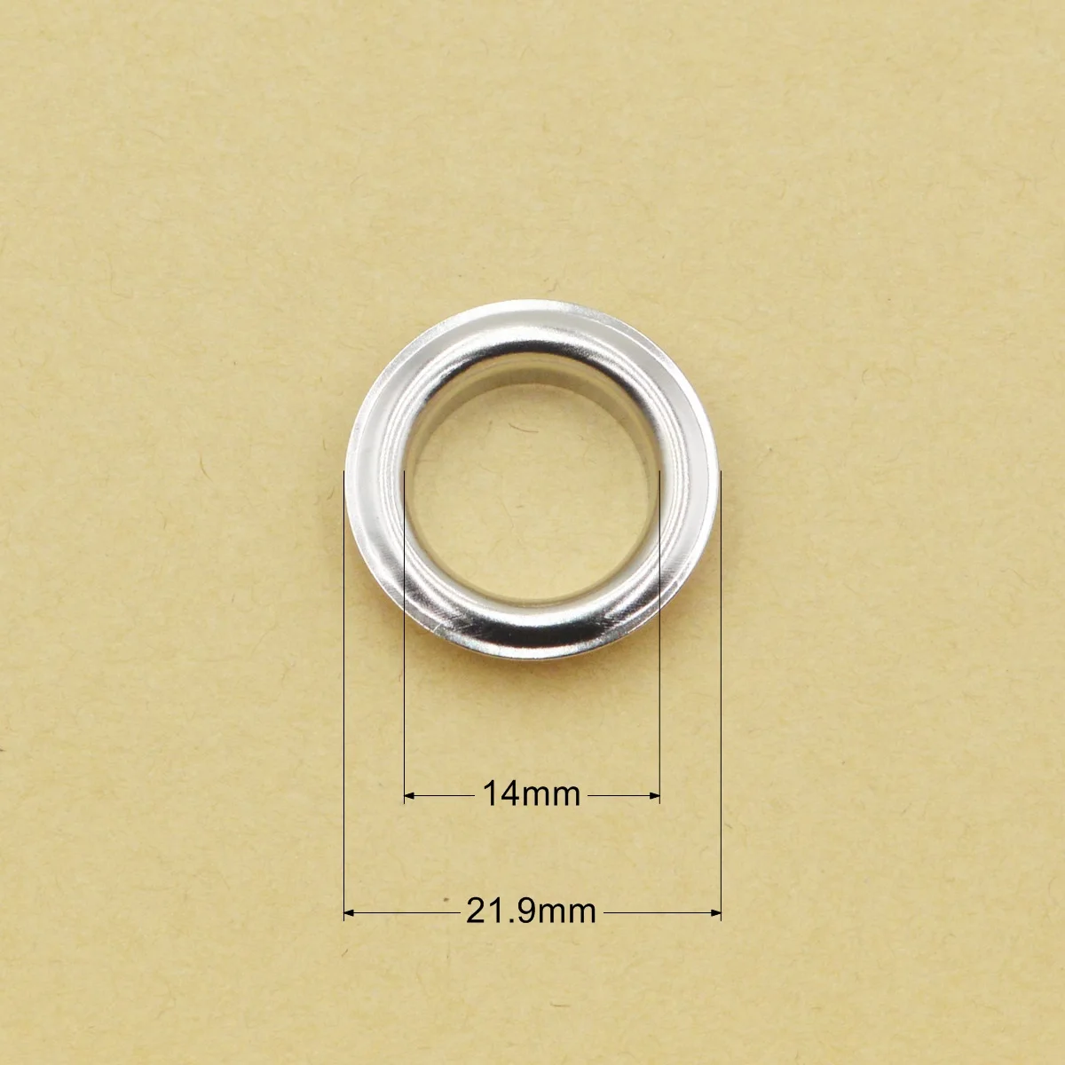100% Фирменная Новинка Все детали изготовлены из латуни. Не ржавеет Идеально подходит для кожаного ремесла, одежды, сумок, обуви, куртки и т. д. Цвет: серебро Диаметр 12 мм Размер Внутренний диаметр 12 мм Диаметр Фланца 18,5 мм Высота ствола 4,3 мм -------------------------------------- Диаметр 14 мм Размер Внутренний диаметр 14 мм Диаметр Фланца 21,9 мм Бочка высотой 4,6 мм Pakcge включает в себя: 30 люверсов + 30 шайб Примечание: края люверсов плоские Возможны незначительные отклонения в размерах.