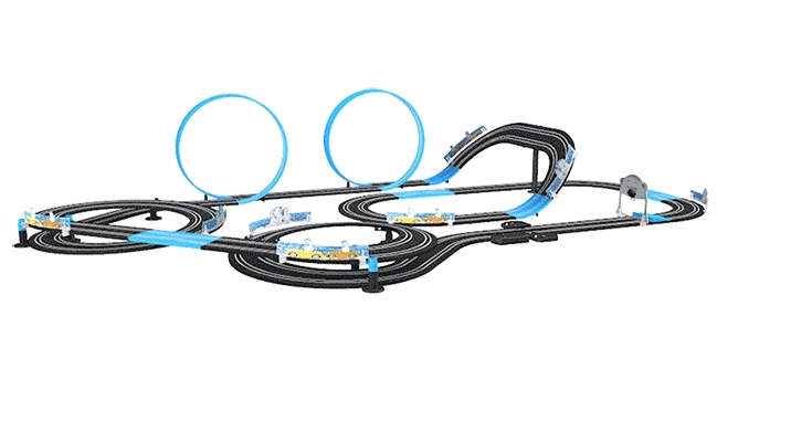 MR-04 = 8,4 м trilha + 2 carros + 2 пульта дистанционного управления + Каррегадор + aventura caverna коррида cerca + saltando aventura