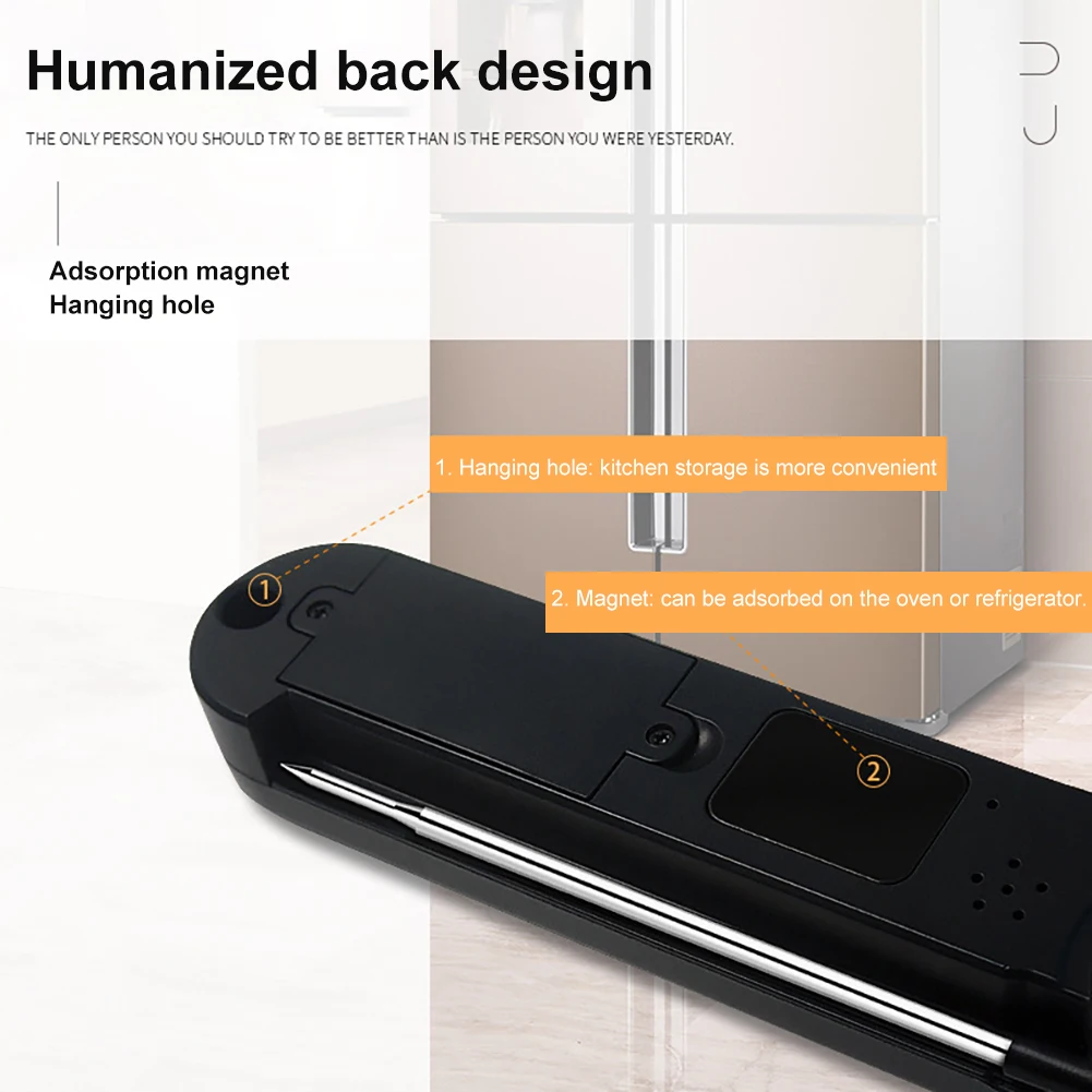 [Пользовательский термометр сигнализации]-вы можете установить различные температуры в качестве напоминания тревоги в соответствии с вашими потребностями. При достижении заданной температуры звуковой сигнал будет звучать, что является хорошим помощником для приготовления стейка или приготовления детского молока или даже воды для купания.