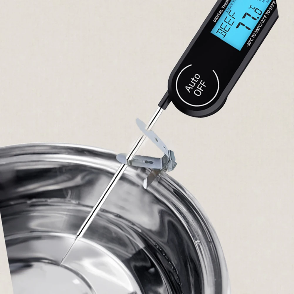 [Температура тока голосового вещания]-функция голоса термометра помогает слышать температуру от голосового вещания в местах с чрезмерным дымом, особенно для людей пожилого возраста пресбиопии, что более удобно и дружелюбно. Цифровой термометр со складной 4.6-дюймовым датчиком качества еды из нержавеющей стали имеет функцию автоматического включения/выключения. Откройте зонд и закройте сложенный зонд. Легко использовать, хранить и переносить.