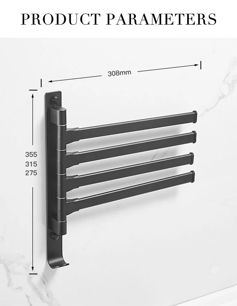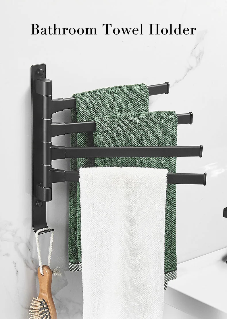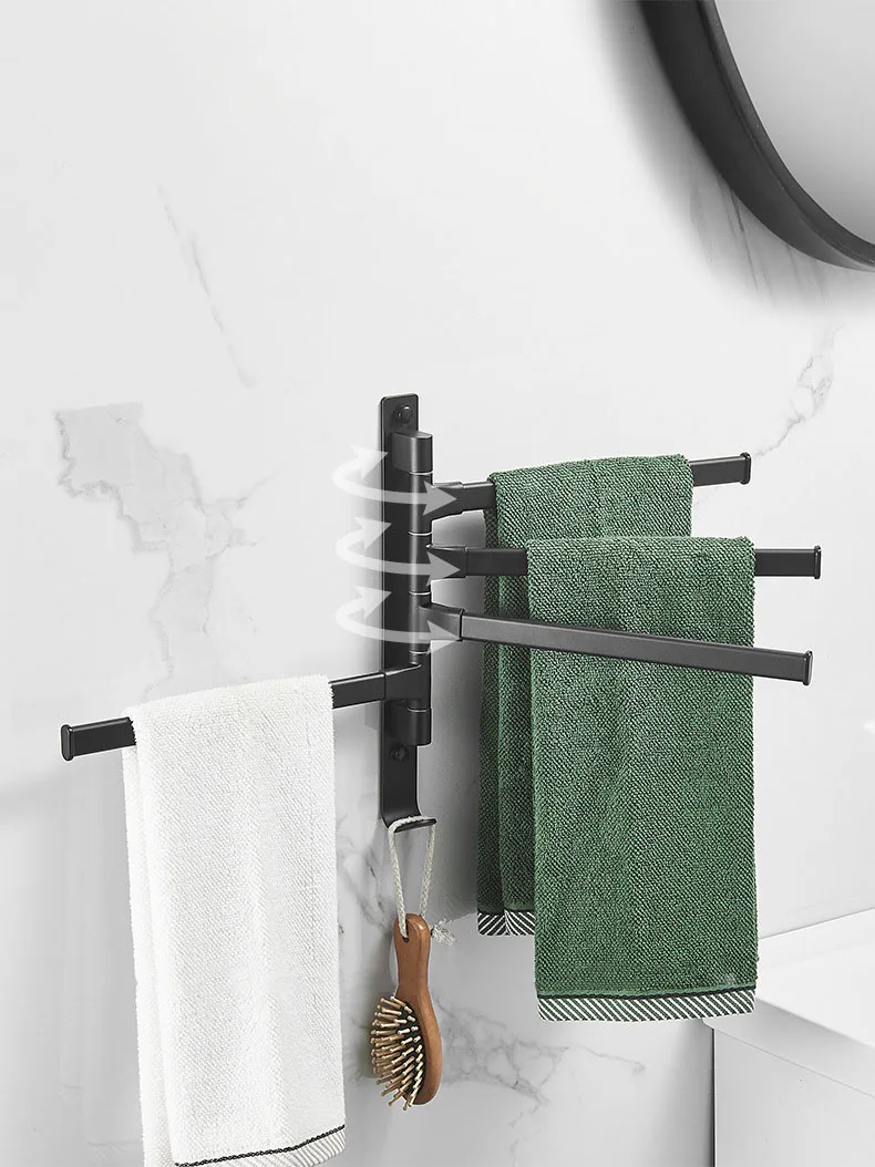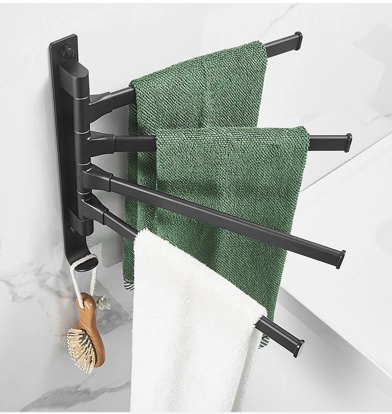 Держатель для полотенец для ванной комнаты черный держатель для полотенец Настенный вращающийся органайзер для ванной комнаты вешалка для туалетной комнаты Аксессуары для ванной полки