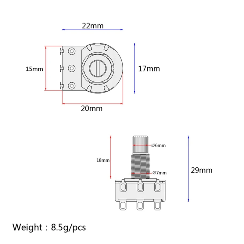 Размер: длина вала 18 мм, диаметр 6 мм