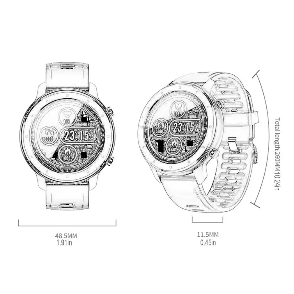 Характеристики дисплея: 1,28 полнодюймовый IPS цвет