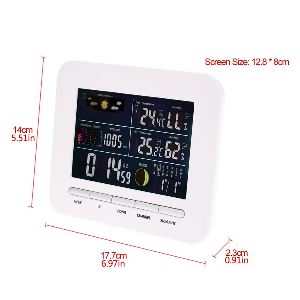 Характеристики: 1. Может отображать время и измерять температуру и влажность в помещении и на улице. Функция радиочастотного приема 2,433 МГц, вы можете понять температуру и влажность на открытом воздухе через внутренний приемник. 3. Прогноз погоды: Солнечная, облачная, облачная, дождливая и демонстрационная. 4. Температурный блок °C / °F может быть выбран нажатием и удерживанием «Макс/мин» в течение 3 секунд. 5. Максимальная/минимальная память для внутренней и наружной влажности и температуры, а также давления воздуха. Описание: цветной ЖК-дисплей с подсветкой. Отображается фаза Луны. Он также имеет двойное оповещение и функции повтора. Стена или рабочий стол является необязательным и простым в использовании. Характеристики: Модель: TS-76 Тип: Европейский Диапазон измерения температуры: 0 ~ 50(°C) точность измерения влажности: 20%-99% (RH) Цвет: белый размер: 177*140*23 посылка включает в себя: 1 * термометр Примечания: 1. Из-за различий между различными дисплеями изображение может не отражать фактический цвет изделия. 2. Физические ошибки могут возникать из-за различных личных методов измерения. Спасибо!