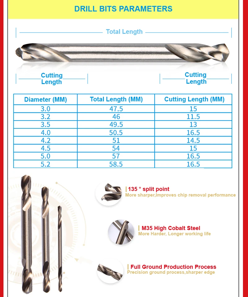 Размер: 3 мм (7/64 дюйма), 3,2 мм (1/8 дюйма),4 мм (5/32 дюйма), 4,2 мм, 4,5 мм (11/64 дюйма),5 мм (3/16 дюйма) посылка: 10 ⑤ кор. поверхность: коричневый процесс: Полное заземление, 135 градусов, сплит-материал наконечника: HCO M35 (Кобальт 5%) подходит для резки твердого металла, нержавеющей стали, сплава, мягкого металла, дерева, пластика и так далее