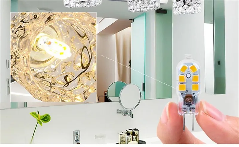 AC DC 12V 220V, идеальная замена G4 галогенная лампа непосредственно. Угол луча 360 градусов, это самый широкий угол для освещения. Счет экономии электроэнергии: заменить галогенную лампу 10-20 Вт, сохранить 70%-85% на счет электричества освещения. Простая установка: Стандартная база G4, может быть легко установлена вместо обычных галогенных ламп. Широкий спектр применения: подходит для хрустальных ламп, коридорных ламп, люстр, зеркальных передних ламп, настенных ламп и так далее.