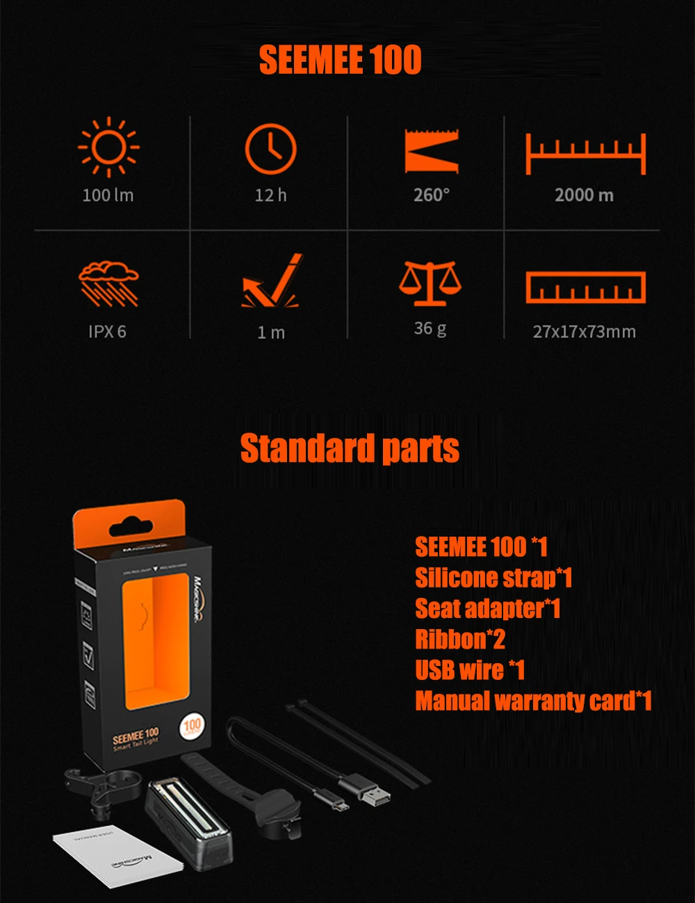 Все 3 задних фонаря поддерживают режим установки седла и подседельного штыря. SEEMEE 30: не поддерживает функцию торможения
