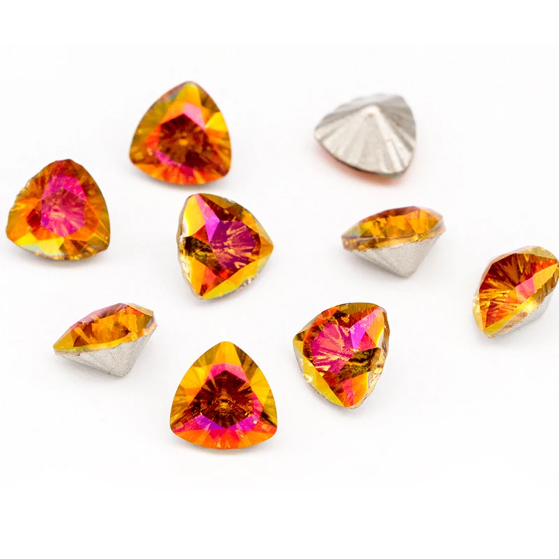 Блестящий мистический причудливый Камень 7x7 мм жир tri-angle стекло кристалл pointback камень Сделай Сам Изготовление ювелирных изделий/одежда/Сумка/дизайн ногтей Цвет: кристалл AB, Серебряный оттенок, Вулкан, Кристальное солнце, витрейл светильник, витрейл Роза Материал: Хрустальный кристалл K9 Тип: аксессуары для камней с кристаллами DIY Техника: Держатель для приклеивания Вид продукции: Diy бусины ювелирные изделия аксессуары поделки камни