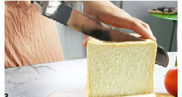 Описание продукта: Наименование: нож для хлеба Полная длина: 33 см (8 дюймов) Длина лезвия: 19,3 см Ширина лезвия: 2,9 см (в самом широком месте) Толщина лезвия: 2,0 мм Вес нетто: 180 г Твердость: 57 HRC. Материал: лезвие из нержавеющей стали 7 CR17, поверхность лазерного Дамасского рисунка Ручка: Высококачественная цветная деревянная ручка. Характеристики: острый и прочный; Супер антикоррозийный; Светильник с энергией. Упаковка: многослойная защита, ударопрочный, защита от давления, защита от плесени