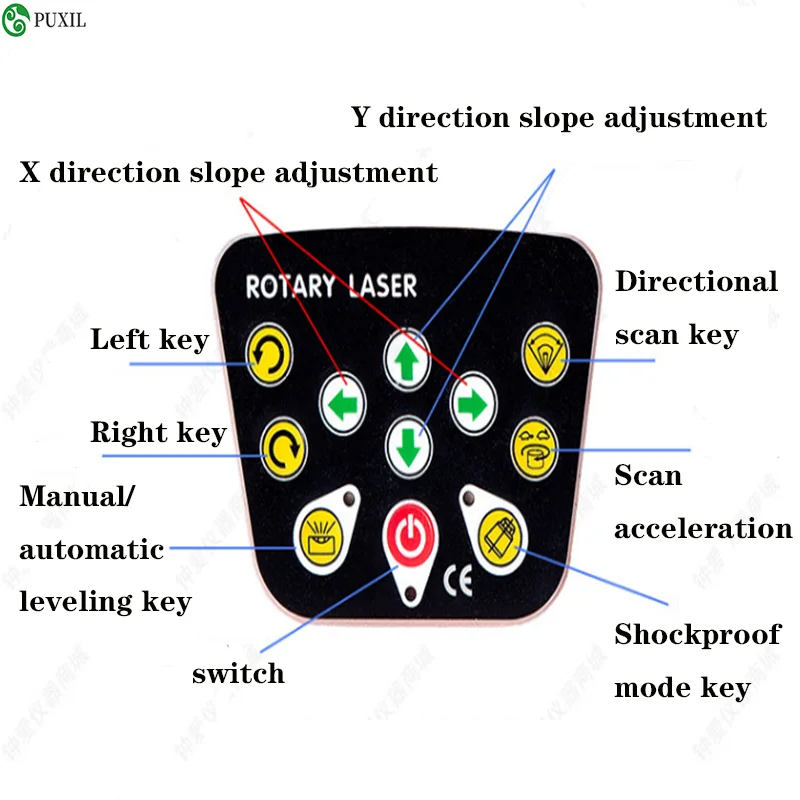 Параметры Точность выравнивания: горизонтальная: ± 20 ″; Вертикальная: ± 20 ″ Диапазон выравнивания: ± 5 ° Диапазон измерения: диаметр: 500 м (с помощью лазерного детектора) Скорость спиннинга: 0, 60, 120, 300, 600 р. П. М Угол направленного сканирования: 0 °, 10 °, 45 °, 90 °, 180 ° Диапазон регулировки наклона: ± 5 ° (двунаправленный) Светильник источник света: лазерный диод, длина волны: 635nm Пух диода: Точность: ± 1 мм/1,5 м Расстояние дистанционного управления: приблизительно 20 м Рабочая температура: -20 ℃-45 ℃(4 °F-113 °F) Водонепроницаемость: IP 54 Питание AC/DC 4,8-6V(4 секции никель-металл-гидридных аккумуляторных батарей или 4 секции металл-гидридных или никель аккумуляторные батареи) Время непрерывного использования: около 20 часов Размеры: 161 (Д) × 161 (Ш) × 184 (В) мм Вес: 2,0 кг