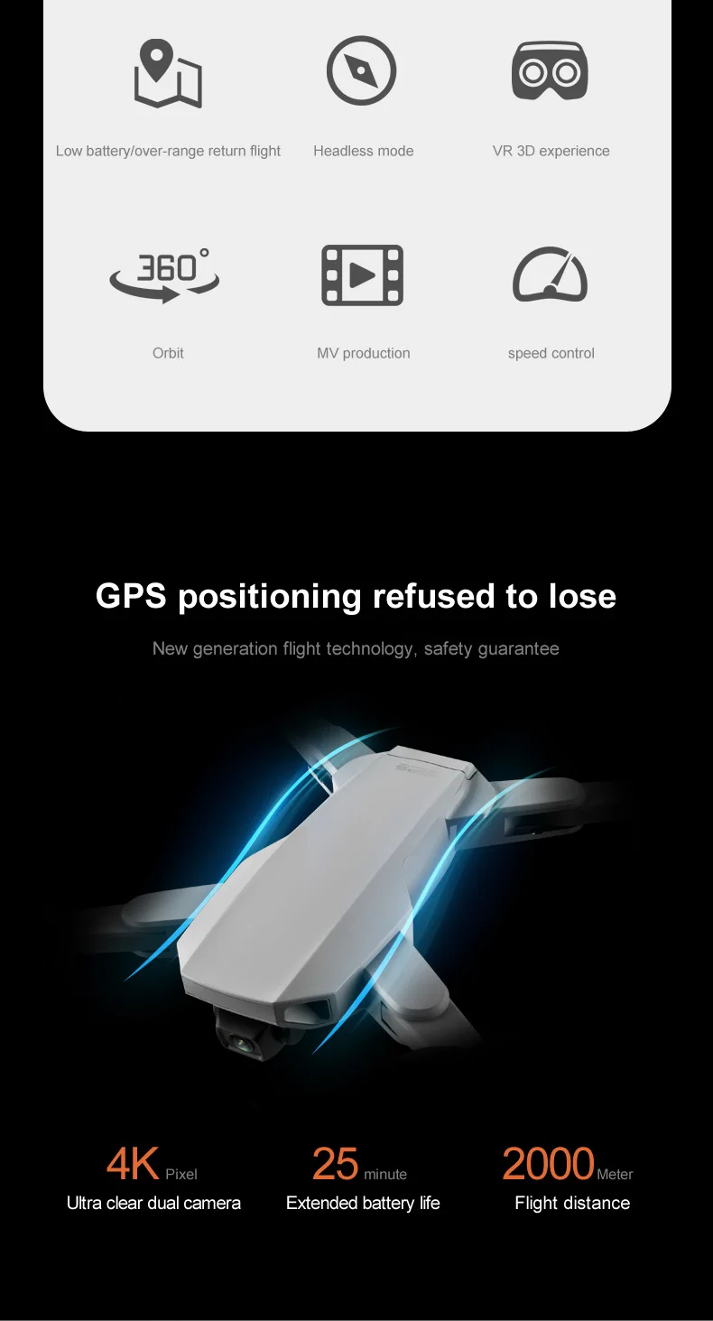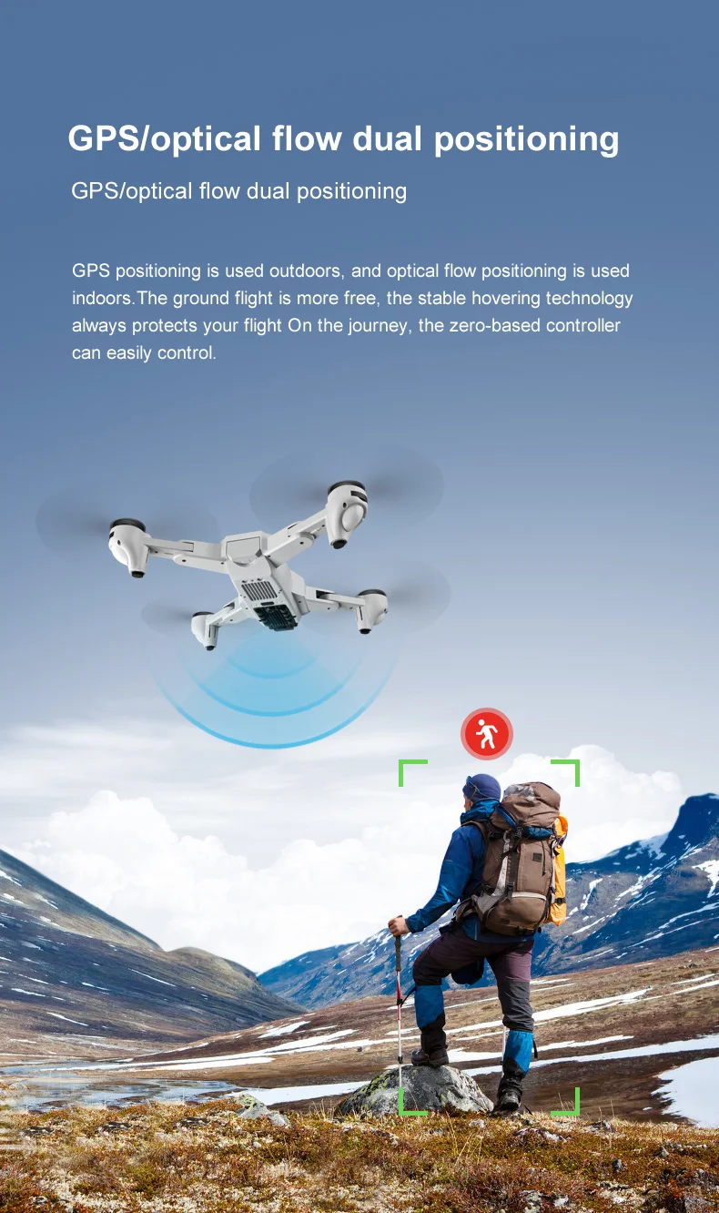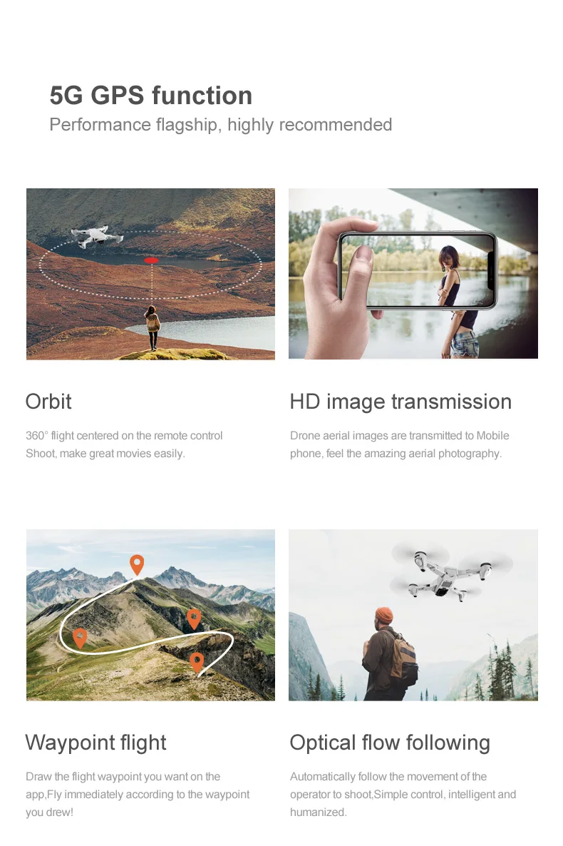 5g оптический поток беспилотный летательный аппарат (БПЛА) с двойным wifi профессиональная воздушная GPS Складная машина: объектив расположен широкоугольный 4 k высокой qing wifi, hd 1080 p с оптическим потоком может переключаться в нижней части угла фото, точное позиционирование, большой диапазон 7,4 В батареи, Низкое электричество/супер расстояние может вернуться из-под контроля, и умное следование, полет вокруг точки, двойной раз (ветряной лист, крыло), мобильный телефон APP управления, пользовательские маршруты, ключ назад, вверх и вниз, вперед назад, левая и правая сторона летают, Безголовый режим, автоматическое переключение оптического потока/GPS