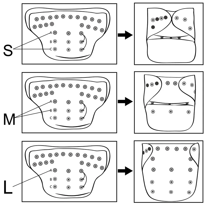 Название продукта: детские тканевые подгузники Размер: все размеры s, складной (регулируется в трех размерах s: S, M, L). Материал: Внешняя ткань: трикотажная ткань + дышащая термополиуретановая пленка (мягкая, сильная прочность на растяжение, высокая воздухопроницаемость). Внутренняя ткань: матовая ткань.