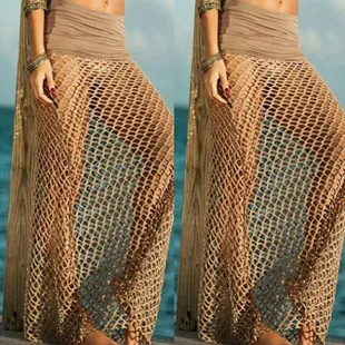Holiday Beach hollow out-Europe and America Skirt elastic crochet mopping long skirts mesh beach skirt LH03