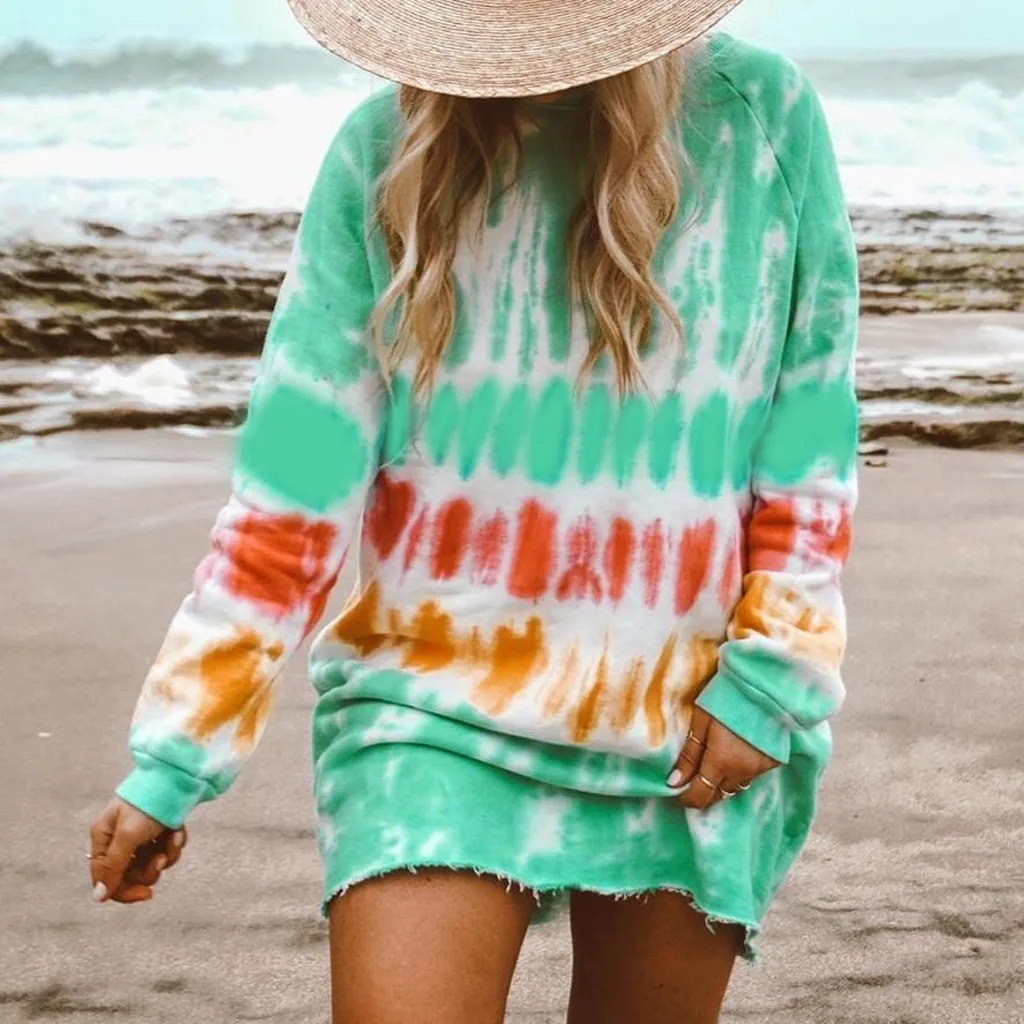 ❥Случайный галстук-крашеный Стиль, градиентный принт, подходит для большинства форм тела, делает вас выглядеть более модные и ультрамодные, также может быть Одежда для беременных