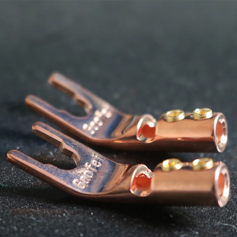 Оригинальный аутентичный Audiophile gaofei 6N медный рожок вилка типа «банан» Y вилка Общая длина: 40 мм Максимальный диаметр проводки: 5 мм Сбалансированный и прозрачный. Высокая аналитическая мощность. Это является важной особенностью этого разъема.