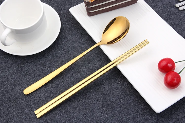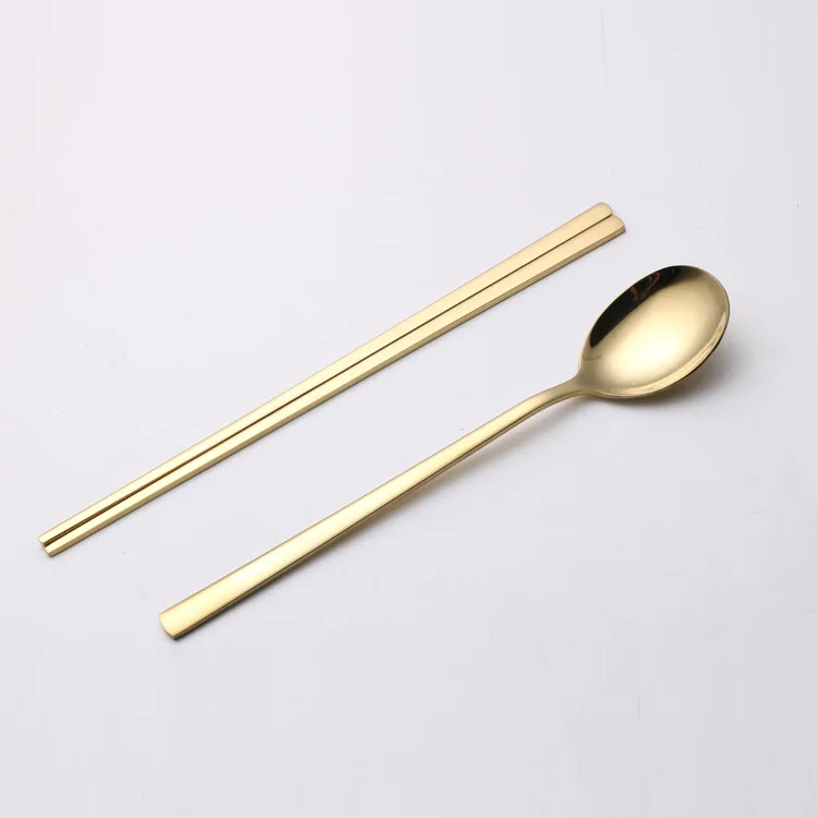 1 шт., корейская кухня, ложка и палочки для еды, посуда из нержавеющей стали, креативные зеркальные полированные титановые круглые твердые золотые столовые приборы, набор
