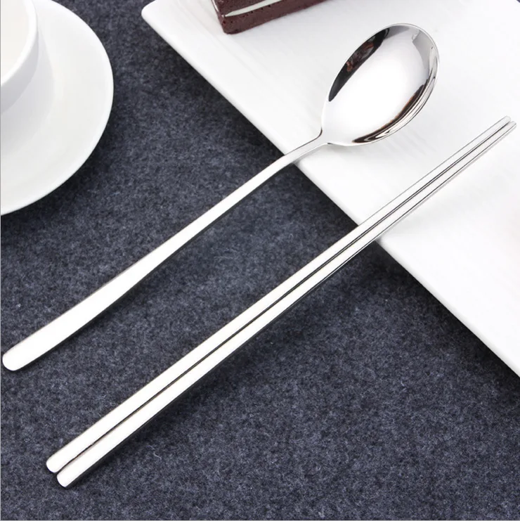 Описание. : Корейский нержавеющая сталь посуда Материал: нержавеющая сталь Процесс полировки: тканевый светильник (зеркальная полировка) Стиль: Япония и Южная Корея Рисунок: однотонный Цвет: (как на картинке) Размеры и Вес: Корейская ложка: 20,2*4 см; 3 мм; 45 г Корейские палочки для еды: 21,3 см; 3,5 мм; 46 г Упаковка: OPP/Box/Bubble bag Посылка включает: 1 шт.;