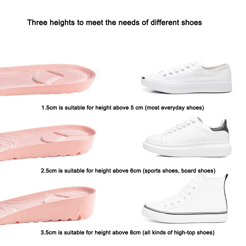 Особенности: Удобная стелька с невидимой вставкой Выглядят выше, стройнее и повышают уверенность в себе Сетчатая ткань и пористый дизайн, обеспечивают лучшую циркуляцию воздуха внутри обуви Мягкий материал из искусственной кожи с эффектом памяти, можно носить весь день и не чувствовать усталость Хороший амортизирующий эффект может уменьшить воздействие и защитить ваши ноги, чтобы облегчить боль и усталость 3 Высота на Ваш выбор: 1,5 см/2,5 см/3,5 см 3 размера на Ваш выбор: 35/36;37/38;39/40 Посылка: 1 пара увеличенных стелек