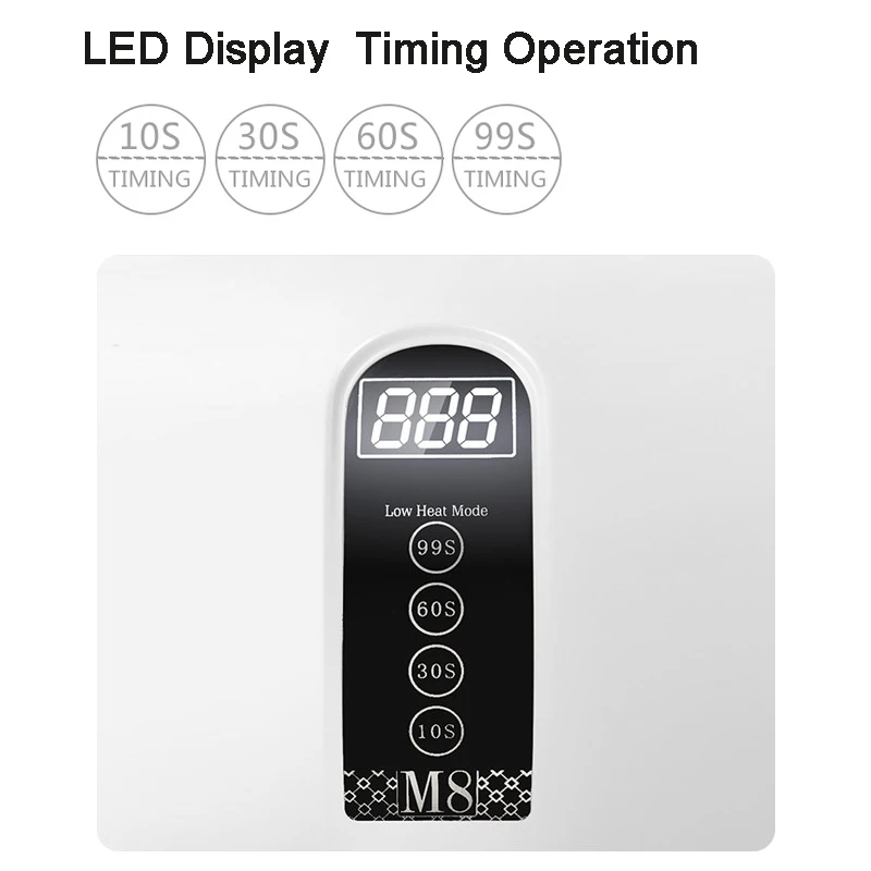 Этот продукт является профессиональным сушильщиком для лака для ногтей, обеспечивающим уход за ногтями не только для пальцев, но и для ногтей. В отличие от традиционной УФ-лампы для ногтей, кроме УФ-клея для ногтей, эта нагревательная машина также может использоваться для сушки всех других гелей для ногтей.