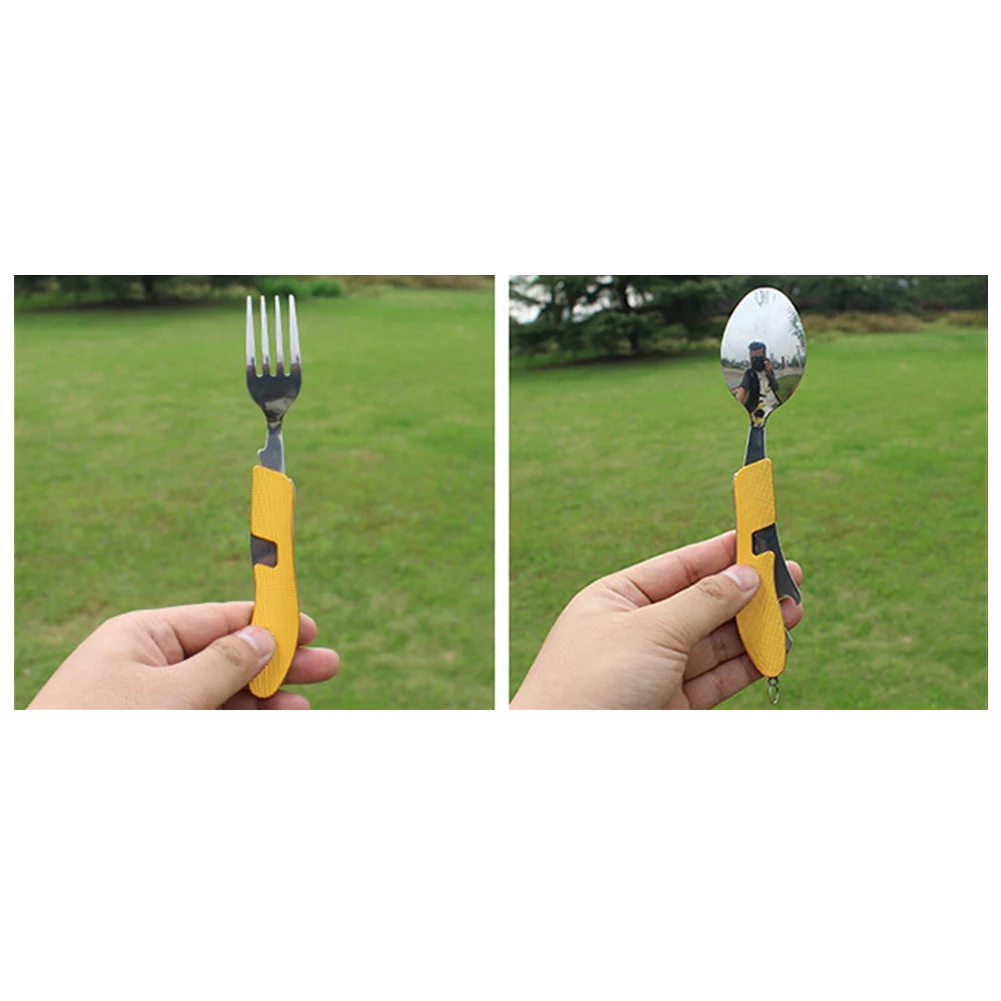 * 5. Универсальный набор столовых приборов имеет функцию ложки, вилки, ножа, открывания бутылок, что хорошо подходит для кемпинга, пикника и активного отдыха.