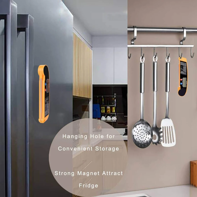 Простота в использовании: термометр для мяса барбекю имеет складной Зонд из нержавеющей стали 4,5 дюйма, предназначенный для того, чтобы держать руку вдали от тепла