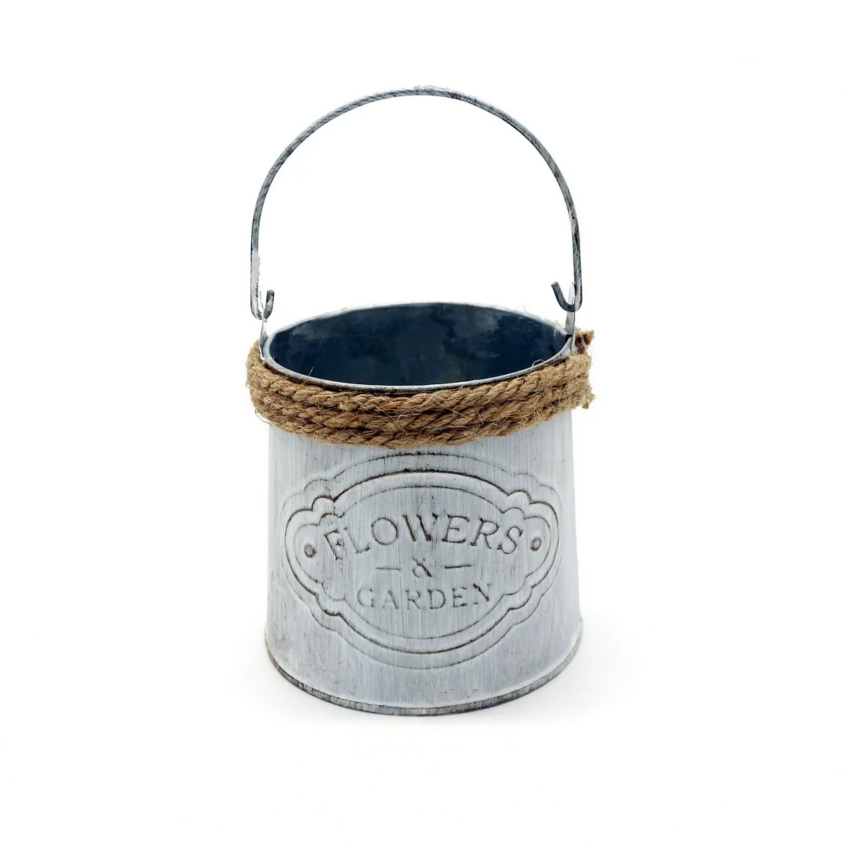 CVHOMEDECO. Деревенский мини Олово сад ведро горшок с пеньковой веревкой, металлический цветочный горшок суккулент контейнер плантатор для дома и офиса Декор