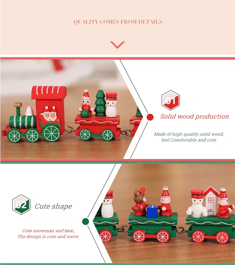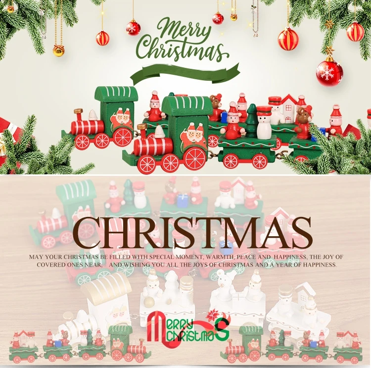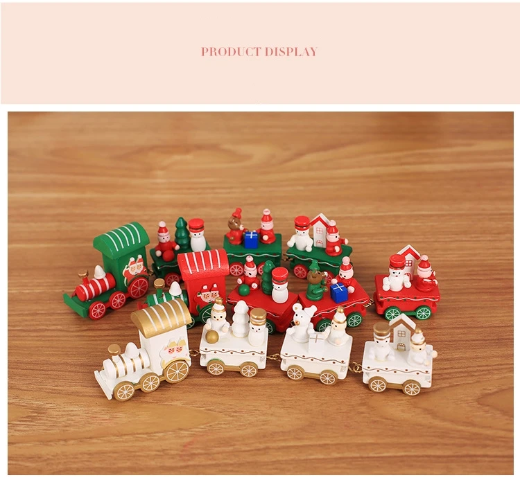 Название: рождественские украшения для поезда Материал: высококачественная древесина, Экологически чистая краска Размер: 21 * 5C M Вес: около 75 г Стиль: белый, красный, зеленый Область применения: небольшие настольные украшения, рождественские украшения для создания атмосферы.