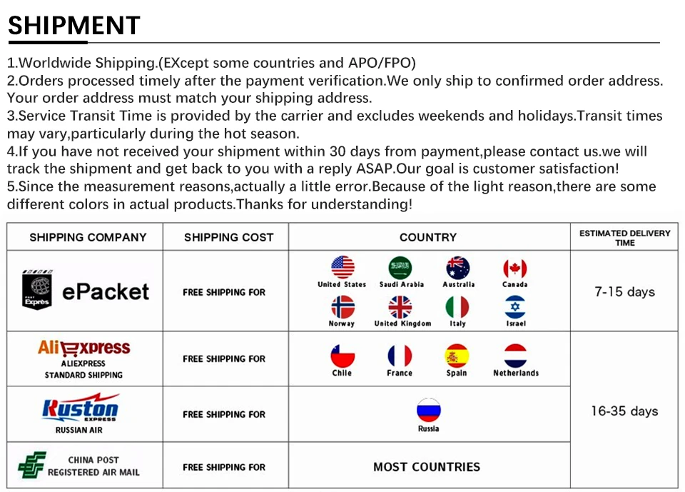 Поскольку стоимость доставки слишком высока, наша упаковка гарантирует только, что продукт не поврежден, и упаковка может быть повреждена во время транспортировки. Если вам нужна хорошая упаковка и вам нужно дополнительно заплатить, мы будем использовать лучшую упаковку. Спасибо за понимание.