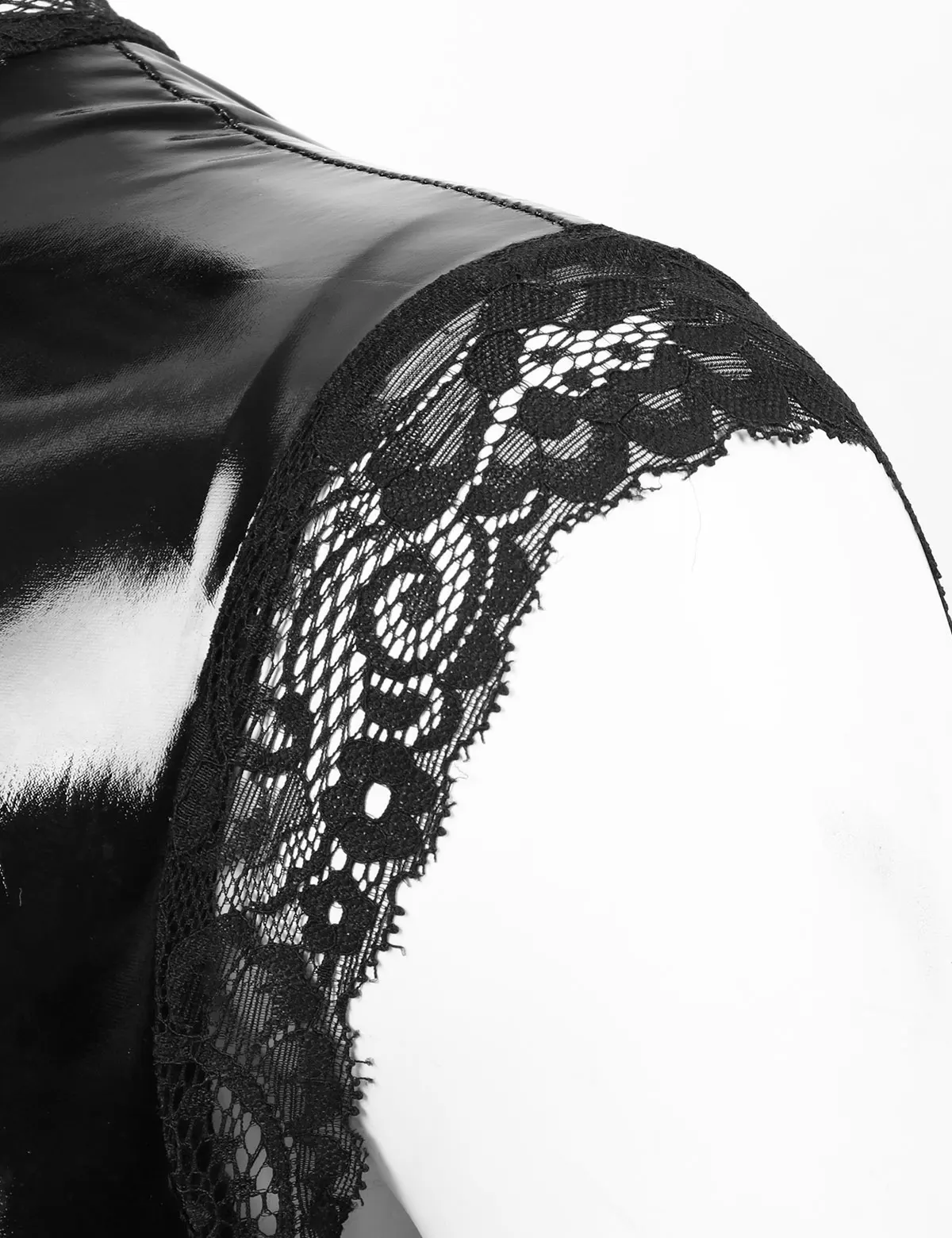 Женское цельнокроеное Лакированное Трико-боди для женщин, внешний вид мокрого вида.