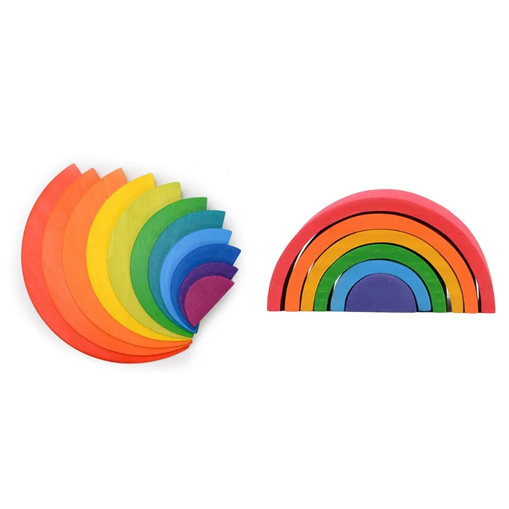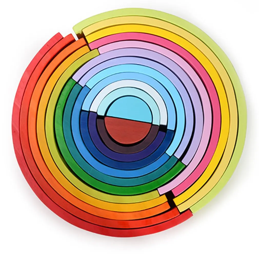 Детская 12-Цвет арочные из цельного дерева игрушка радуга строительные блоки детский сад головоломки раннего образования укладка деревянные игрушки