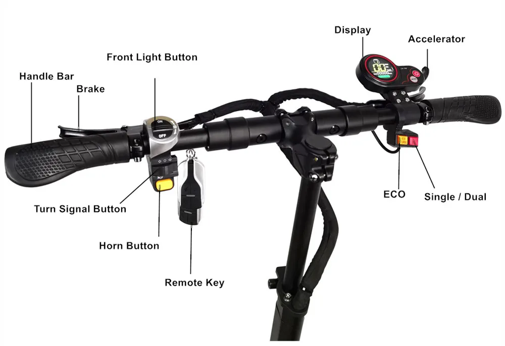 -- 1 шт. скутер -- Зарядное устройство 2 шт. -- Руководство пользователя 1 шт. -- Дистанционный ключ 2 шт. -- 1 место (опция, если с сиденьем будет сиденье)