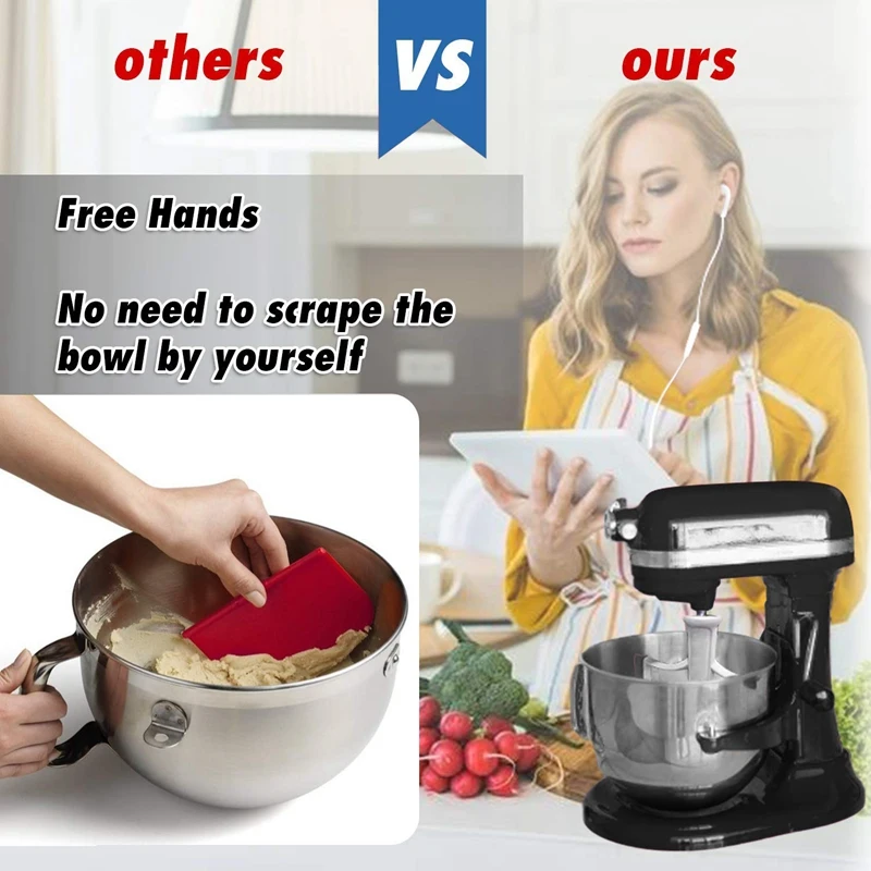 (Полезная тарелка)-с силиконовым краем, он практически избавляется от нарастания Теста На лезвиях и необходимости ручного мытья миски для смешивания с помощью скребка. Нет необходимости в дополнительном инструменте, ракетка-скребок kitchenaid также может быть двойной в качестве лопатки.