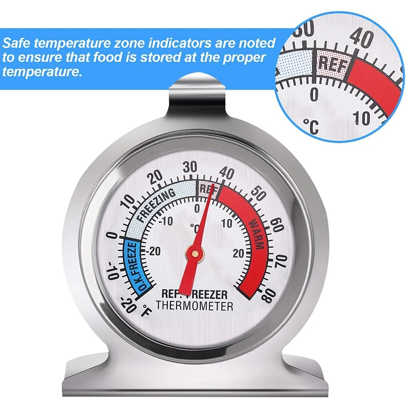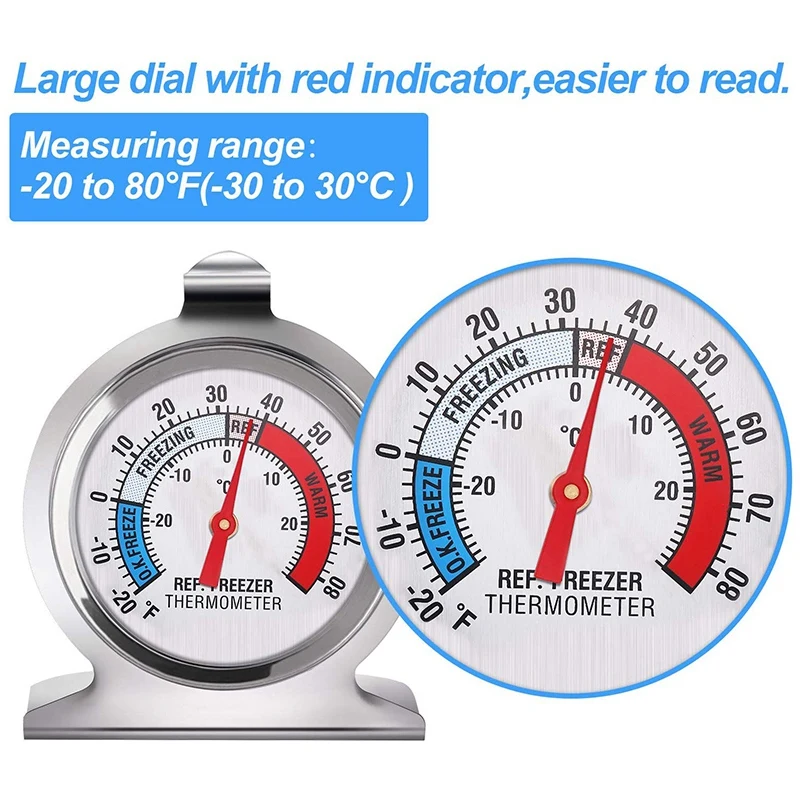 Безопасные температурные зоны: диапазон измерения классического термометра с большим циферблатом составляет от-20 до 80 ℃/ -30 до 30 ℃, на циферблате отмечены различные индикаторы температурной зоны, можно легко увидеть во время использования, ваша еда хранится при надлежащей температуре и остается свежей