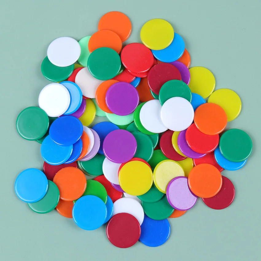 100% Новинка и высокое качество В эти пластиковый Токен фишек детям весело играть. Можно использовать для покрытия называемых цифр в играх бинго, следовательно, делает вашу игру более интересной. Развивайте навыки раннего счета у малышей и детей. Изготовлен из нетоксичного и экологически чистого пластика. Материал: пластик Цвет: прозрачное смешивание/твердое смешивание Размер: около 1,8 см Количество: 100 шт./упак. Посылка включает: 100 фишек для покера (цвета смешиваются случайным образом и не фиксируются)