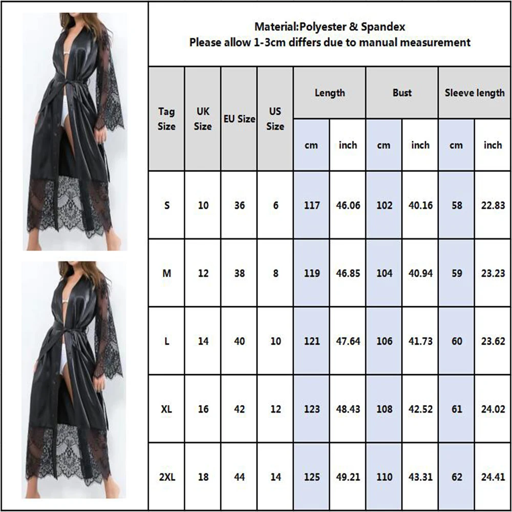 Характеристики изделия: кружевной халат из искусственного шелка с бантом Категория: ночная рубашка Состав основной ткани: полиэстер и спандекс Стиль бюстгальтера: без подкладки Эластичность: Нет эластичность Рисунок: однотонный Стиль: сексуальный, средний возраст Аксессуары: пояс в комплекте Сезон: лето Размер: S, M, L, XL, 2XL Способ стирки: ручная стирка, машинная стирка Инструкции по уходу: Перед использованием необходимо постирать Машинная стирка в холодной воде Не использовать отбеливатель Не сушить Сушить на свежем воздухе Количество в упаковке: 1 х ночной рубашке По этому проекту (Наша цель-показать вам правильную информацию): 1. Пожалуйста, сравните с вашим детальным размером перед покупкой 2. Из-за разницы в цвете различных компьютеров цвет фактического продукта может немного отличаться от изображения 3. Из-за ручного измерения допускается погрешность в 1-3 см 4. Из-за процесса стирки джинсовой ткани могут возникнуть незначительные проблемы с цветопередачей Спасибо за понимание! Размеры таблицей: Размеры информация о продукте Тег Размеры UK Размеры ЕС Размеры Нам Размеры Длина Обхват груди Длина рукава См Дюймов См Дюймов См Дюймов S 10 36 6 117 46,06 102 40,16 58 22,83 М 12 38 8 119 46,85 104 40,94 59 23,23 L 14 40 10 121 47,64 106 41,73 60 23,62 XL 16 42 12 123 48,43 108 42,52 61 24,02 2XL 18 44 14 125 49,21 110 43,31 62 24,41