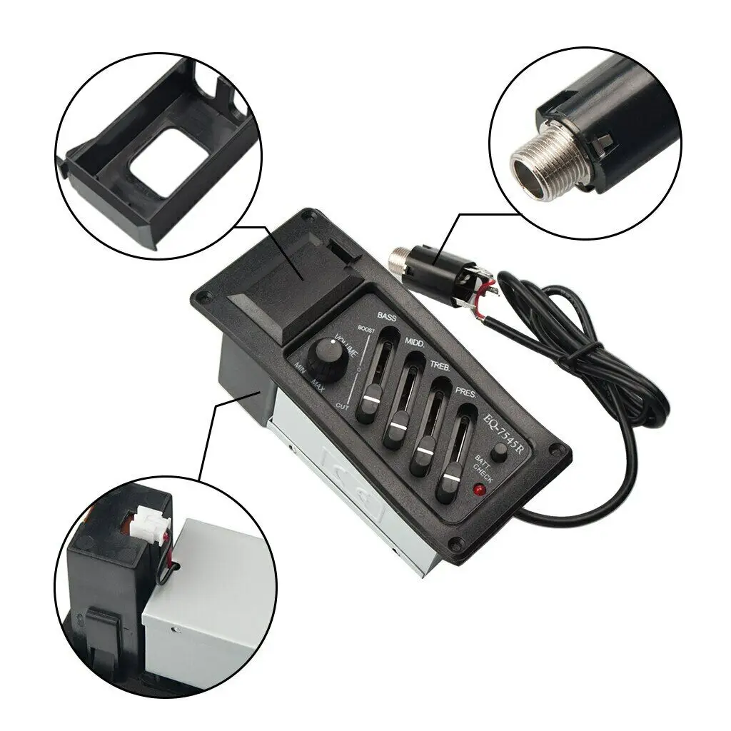 Эквалайзер эквалайзера с 4 полосами может быть легко установлен в акустической гитаре, и это необходимо для электрификации и усиления их звука.