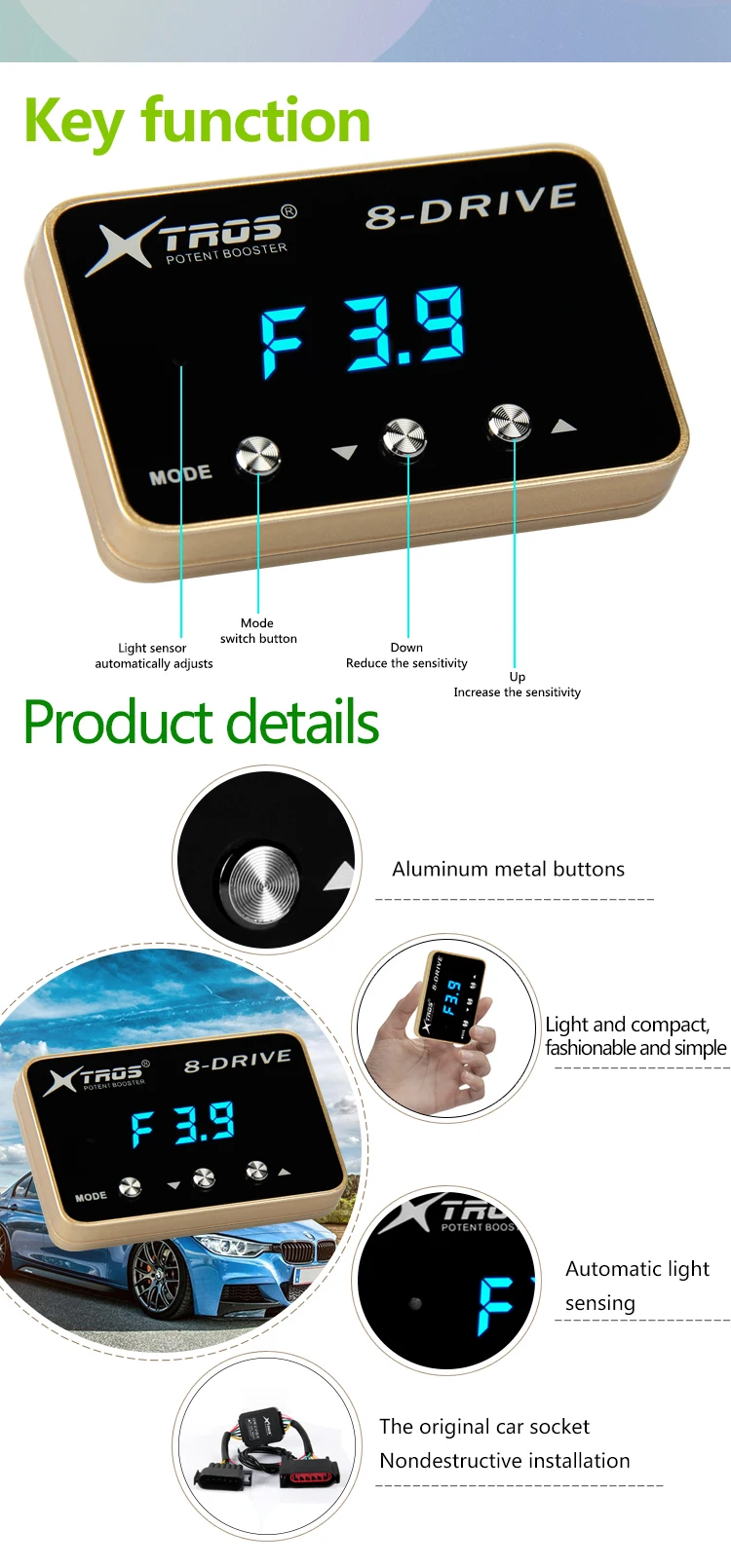 1. Улучшите скорость отклика дроссельной заслонки 2. Улучшает чувствительность дроссельной заслонки транспортного средства 3. Уменьшение залежей углерода двигателя 4. Подключи и работай