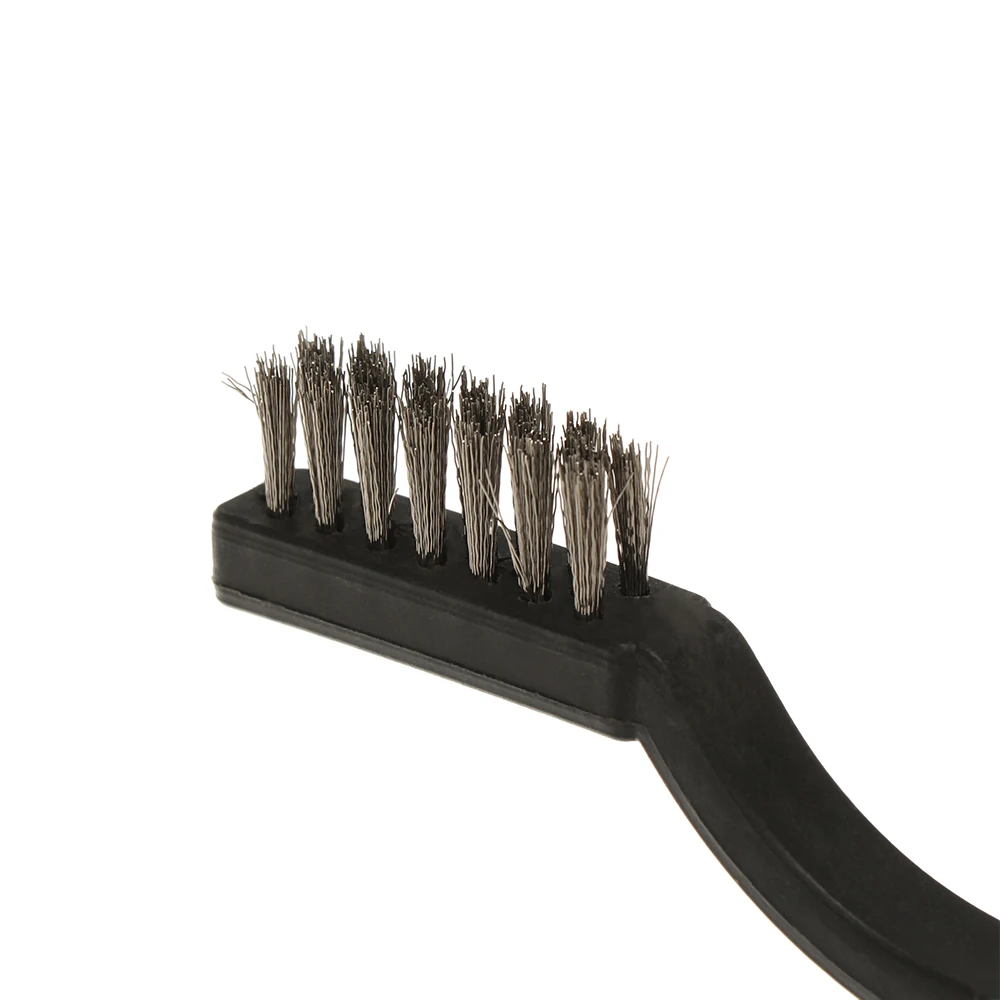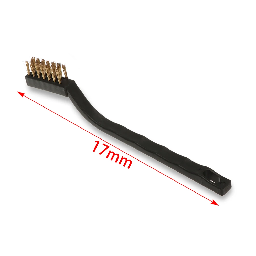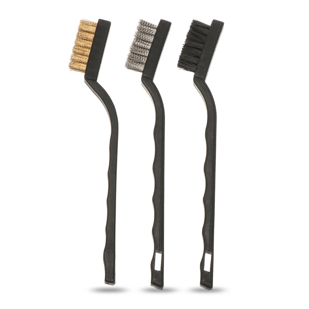 Удобно использовать для очистки различных кухонных приборов, таких как газовая горелка, краны и т. д. Отличный инструмент для тяжелого соскабливания и очистки в плотных, узких пространствах. Применяется для автомобилей, ограждений, дома, хобби, ремесел и т. Д. Отлично подходит для очистки ржавчины и грязи от всех типов металла и других материалов. Легкий и компактный. Латунная щетка подходит для: металлический светильник, свечи зажигания двигателя и очистка батареи. Нейлоновая щетка подходит для: очистки пластика и обивки, отделки приборной панели автомобиля и вентиляционных отверстий газонокосилок, вертикальных жалюзи и многого другого. Кисть из нержавеющей стали подходит для: краски, ржавчины и удаления коррозии на металле. Материал: нержавеющая сталь, латунь, нейлон, пластик Длина: 17 мм Цвет: черный Посылка включает в себя: 1 шт. * кисти Примечание: Настоящий цвет товара может незначительно отличаться от изображений на веб-сайте из-за таких факторов, как яркость монитора, яркость освещения и т. д.