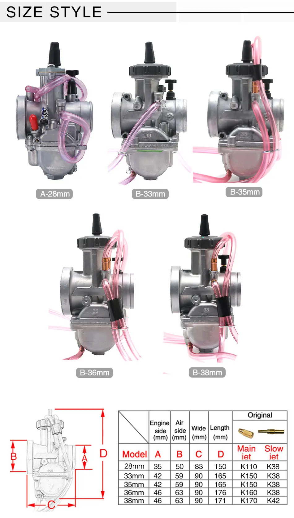 Подходит для всех карбюраторов KEIHIN PJ, PWM, PE и PWK
