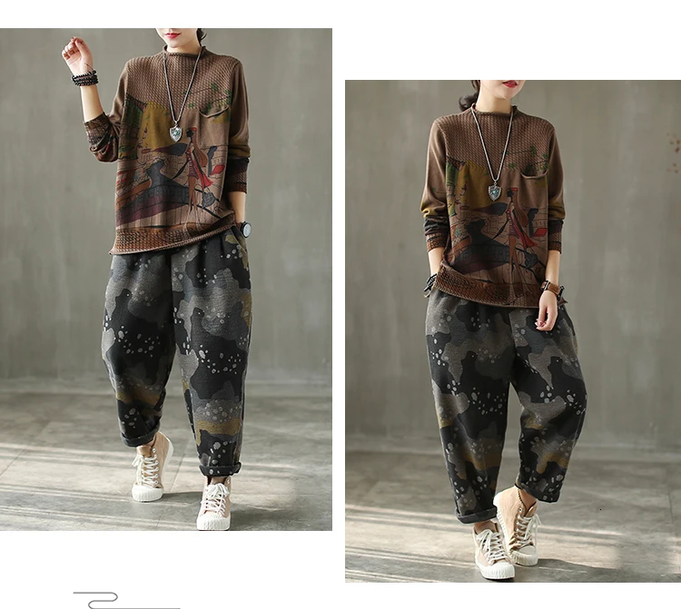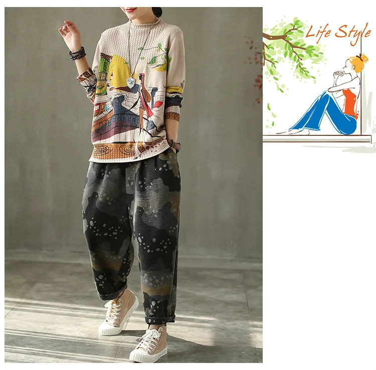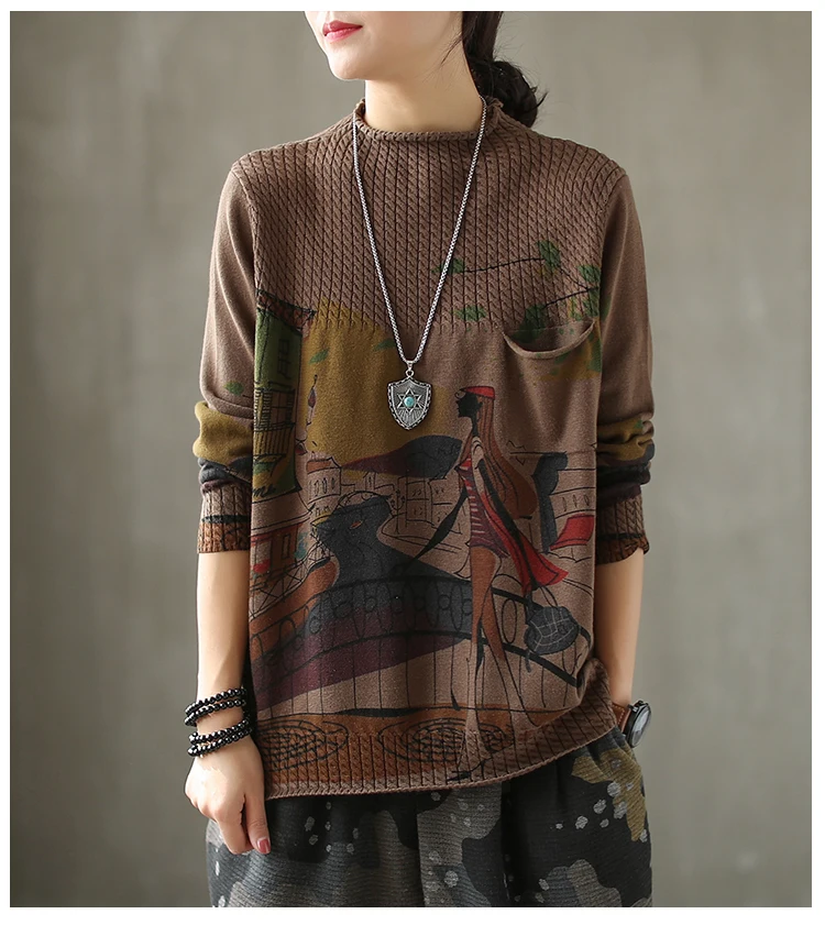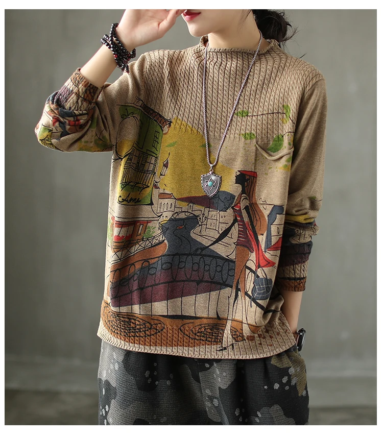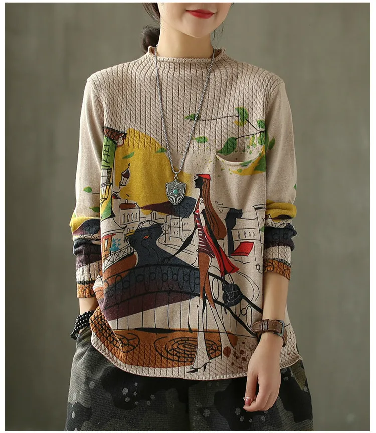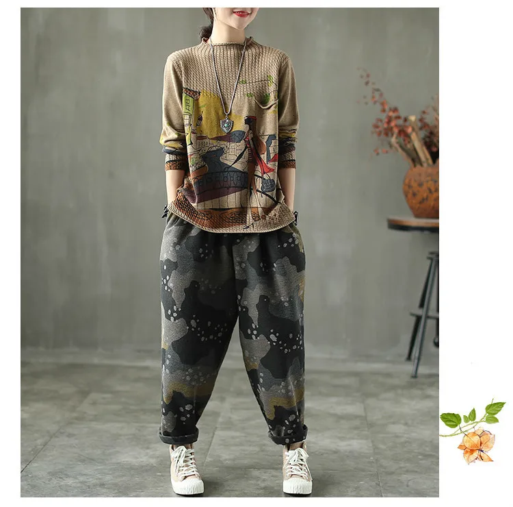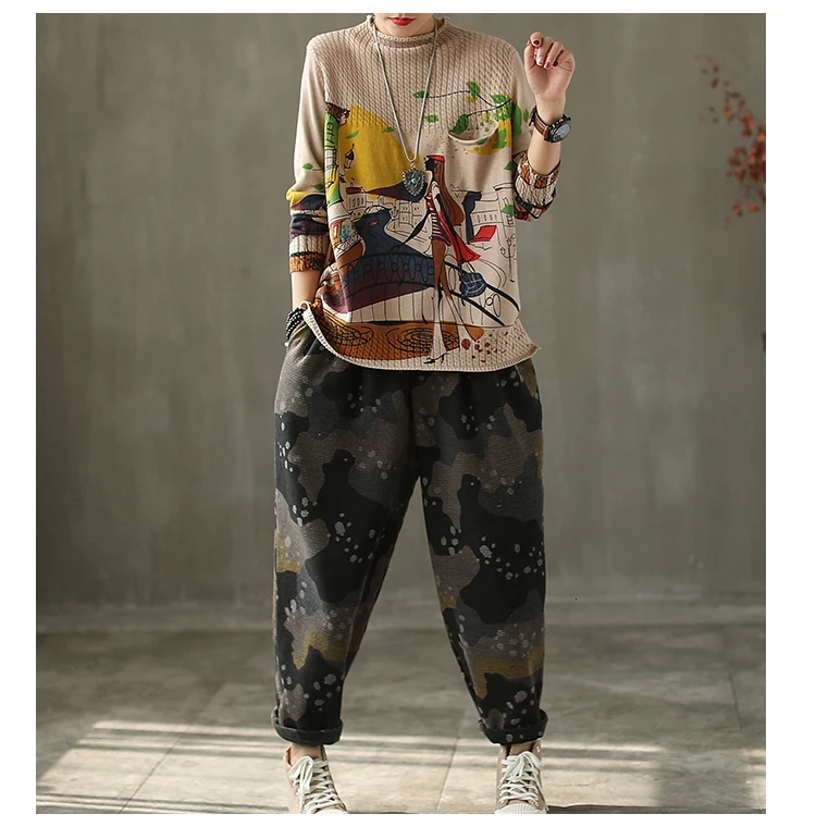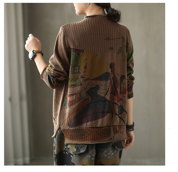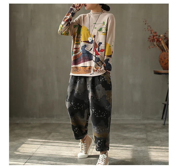 Корейские повседневные свободные вязаные свитера с принтом