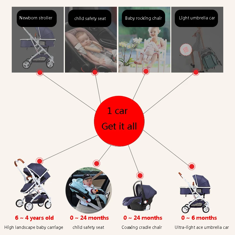 Высокая пейзажная детская коляска из алюминиевого сплава, может сидеть, лежать, складная Коляска светильник четырехколесная коляска